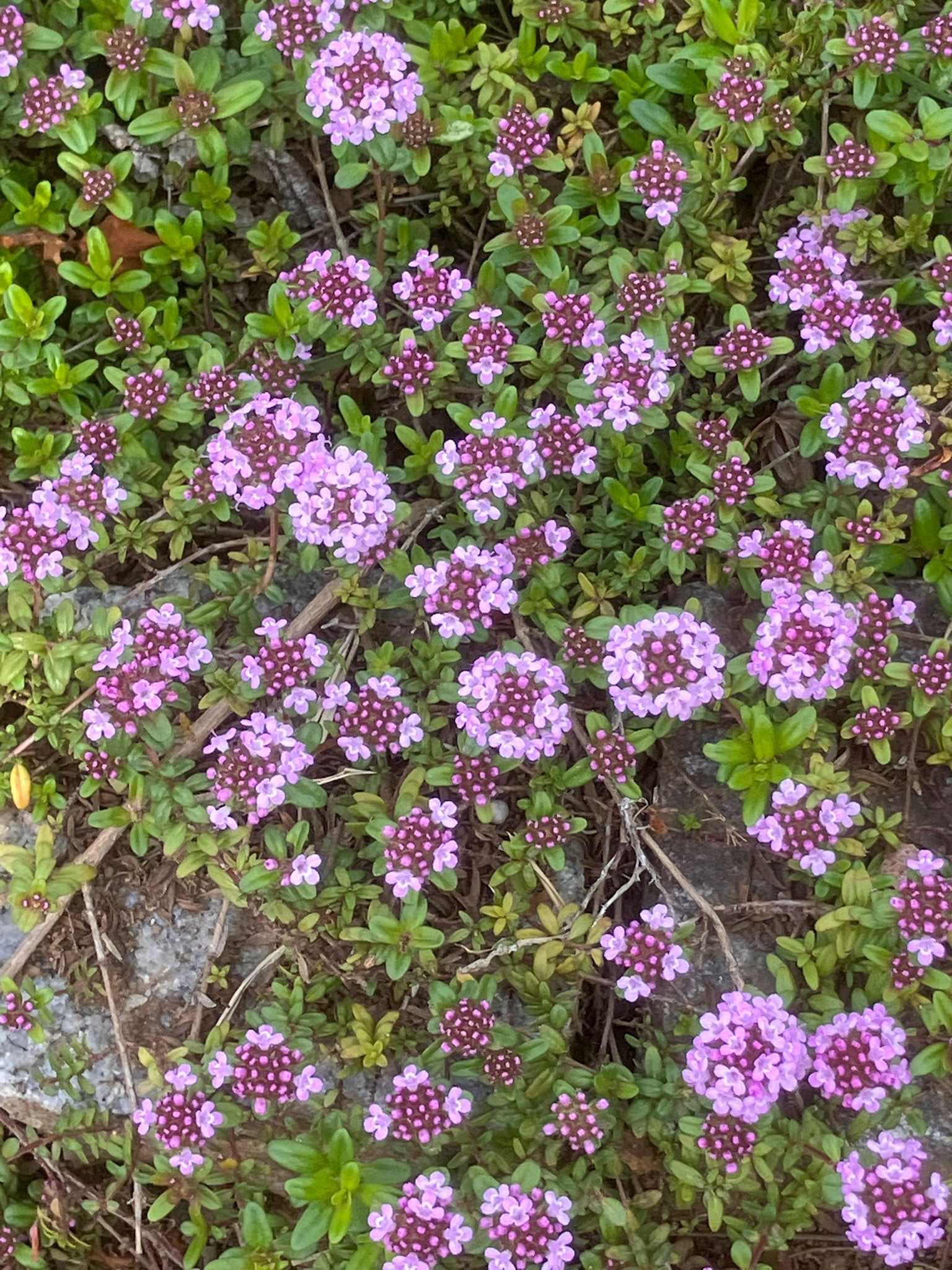 這う様に生長する、匍匐性のタイムで、小さな花が集まって1つの丸い花になって,ピンク🩷色の花を咲かせます☺️