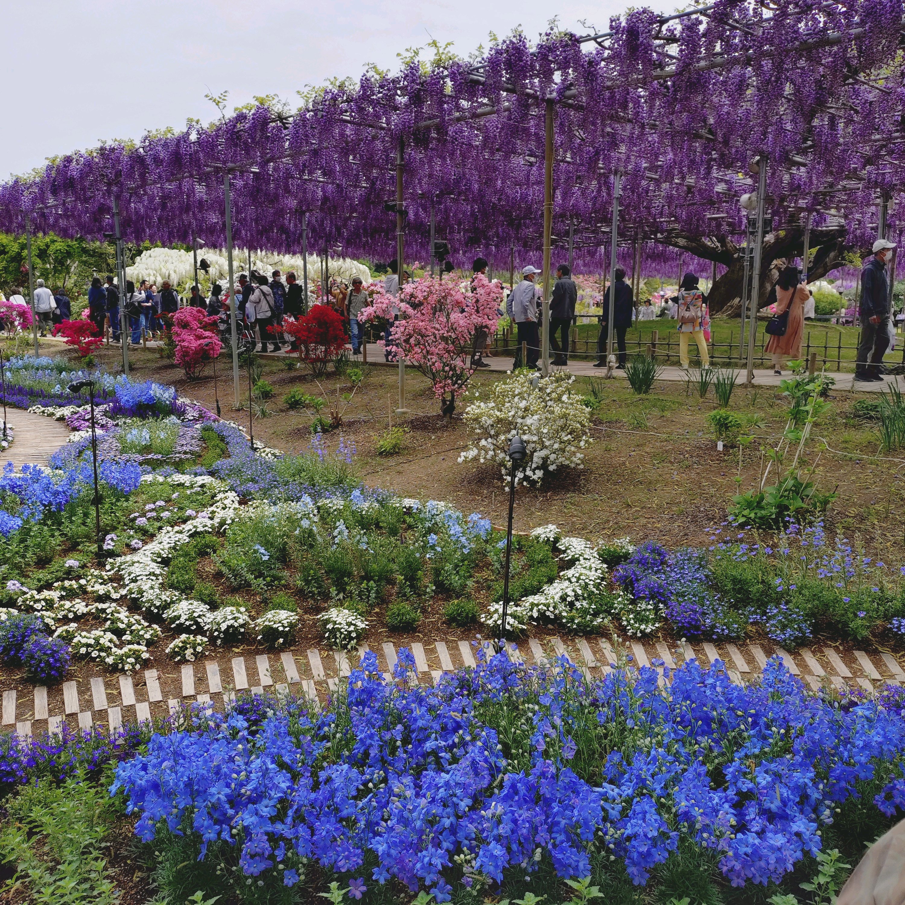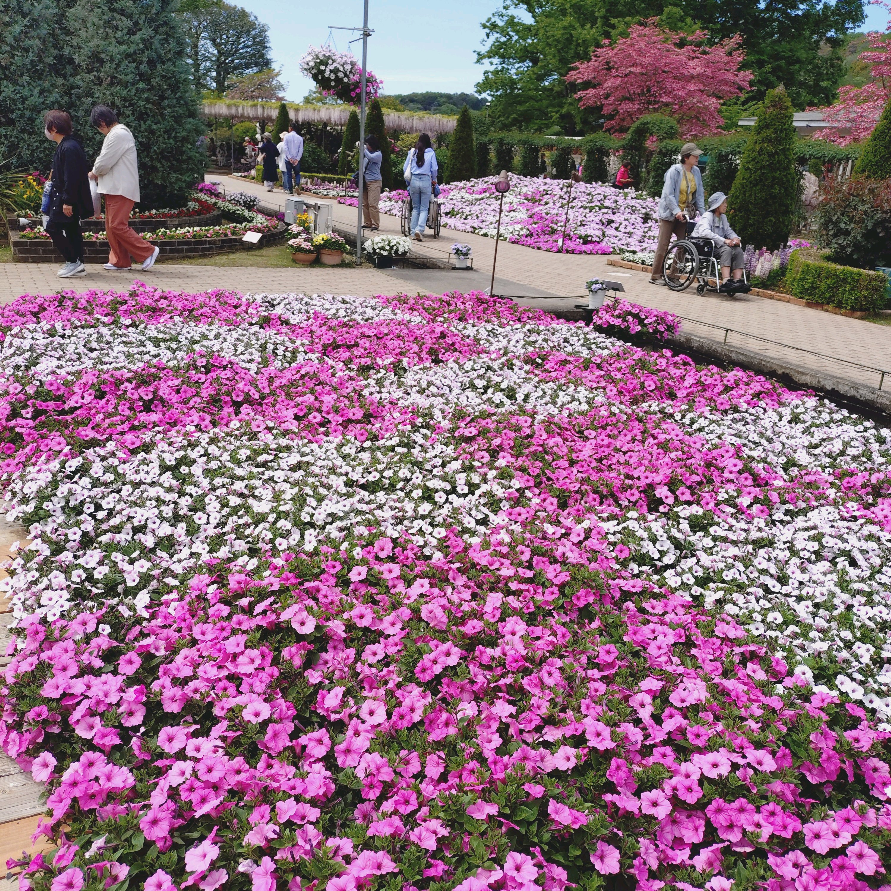 この場所は白、ピンク、黄色、青に分かれて植栽されてました。綺麗でした。