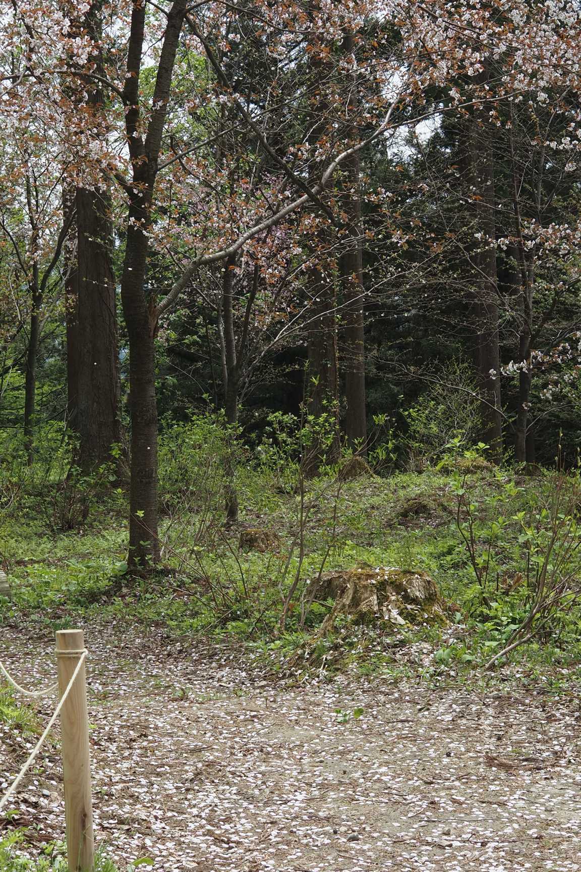 風に乗って、桜の花びらが舞っています。桜吹雪。そして足元は花筵。