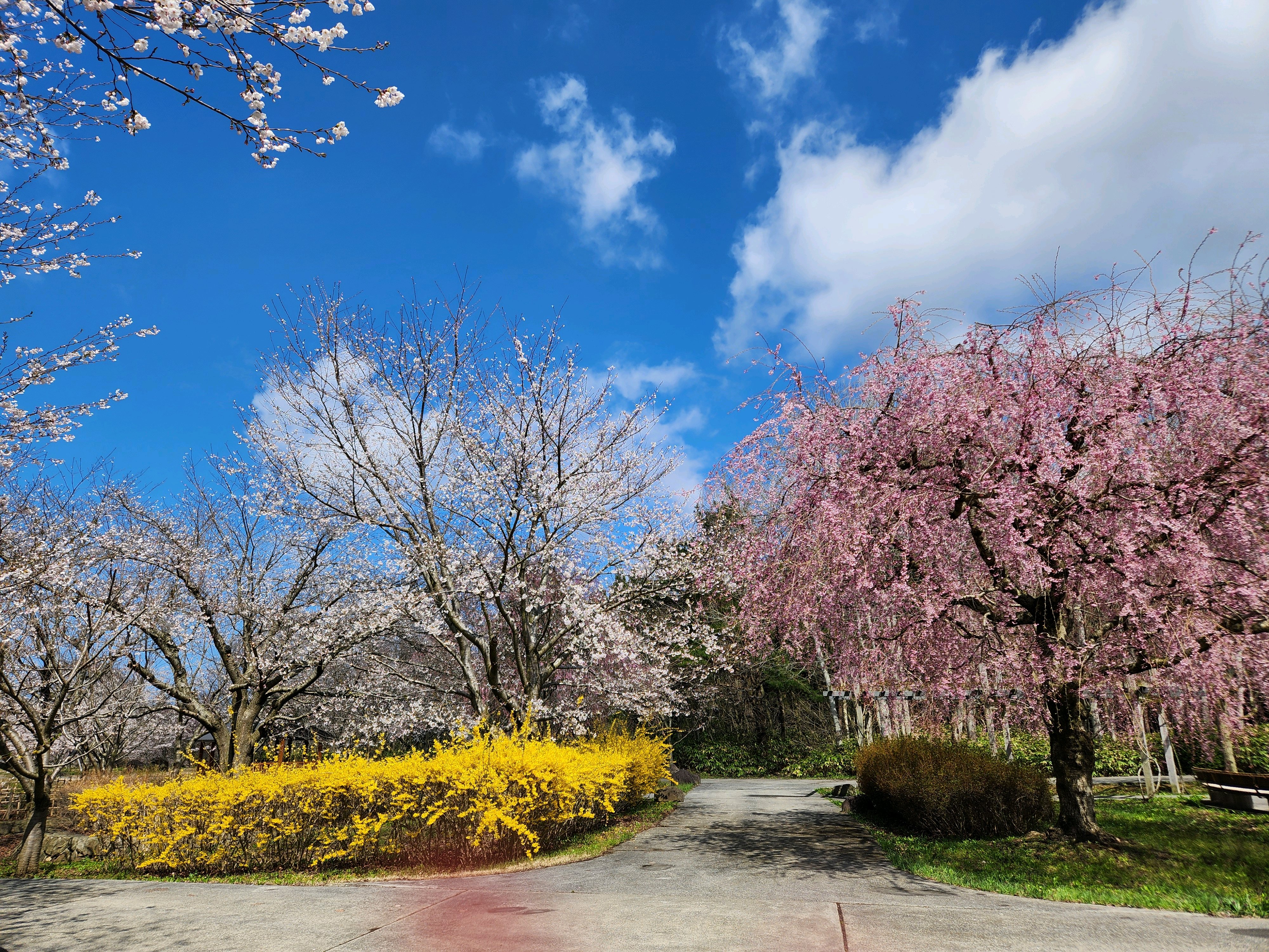 レンギョウ💛としだれ桜🩷のコラボ