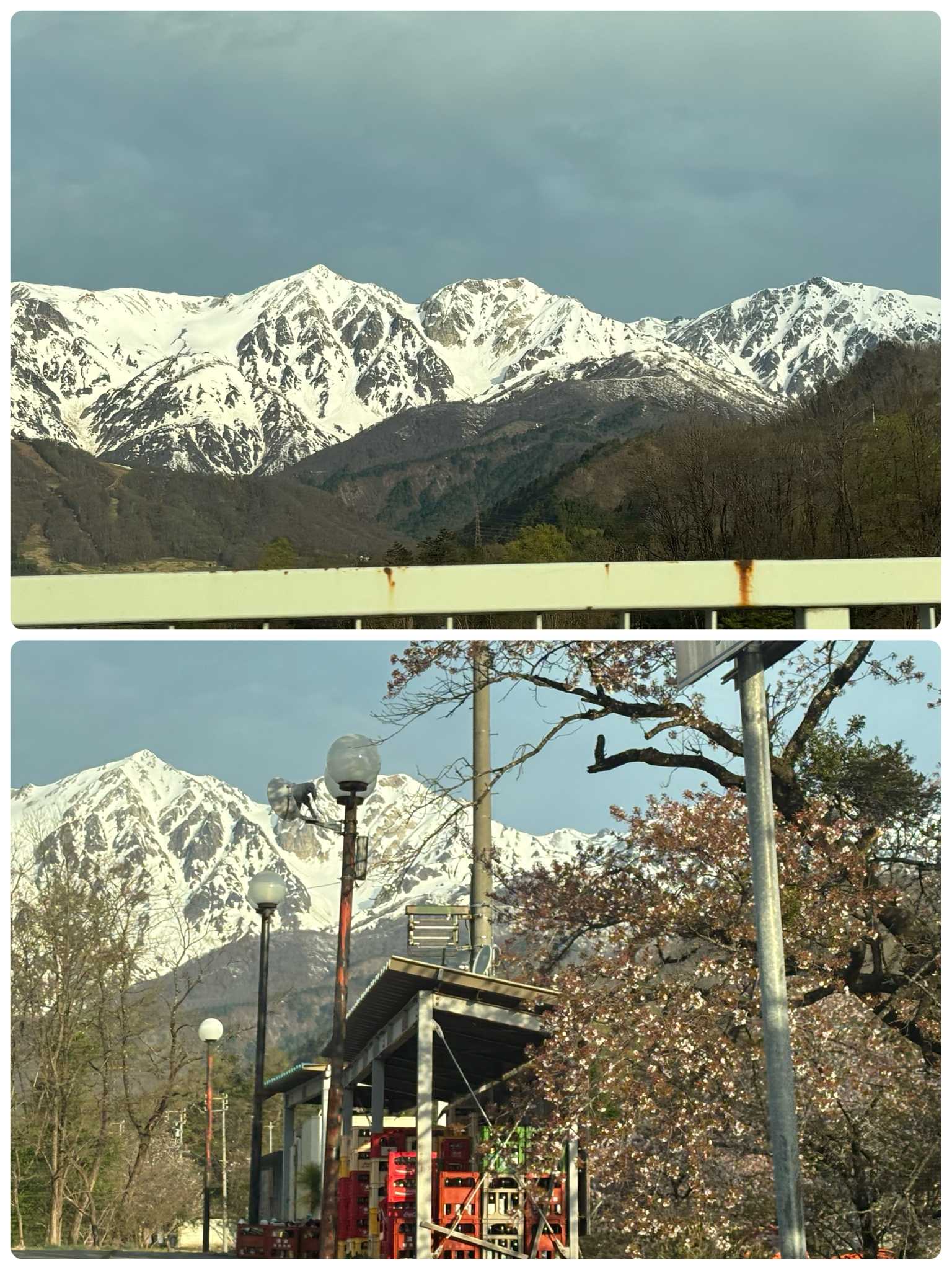 車🚗は白馬に入ると、白馬三山が圧巻です。残雪の綺麗な季節です。