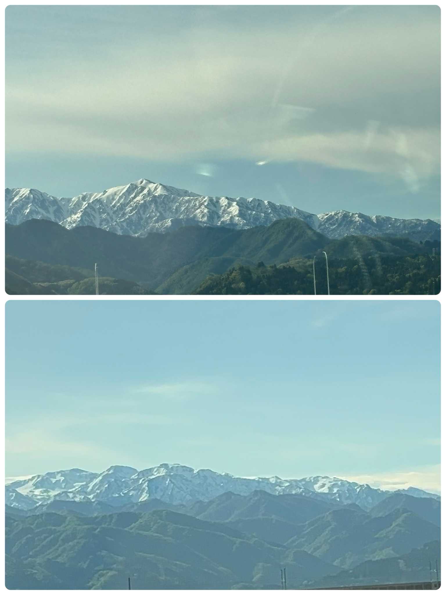 高速に乗り進行方向左には、立山連峰がクッキリと。カッコ良いよね🏔