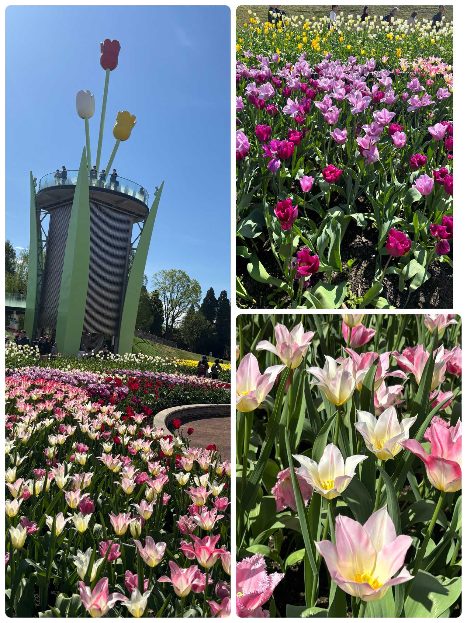 開演し中に入ると、チューリップタワーがお出迎え。でも私たちは、無料🚌て、チューリップ農家さんの畑の見学ツアーに参加しました。
