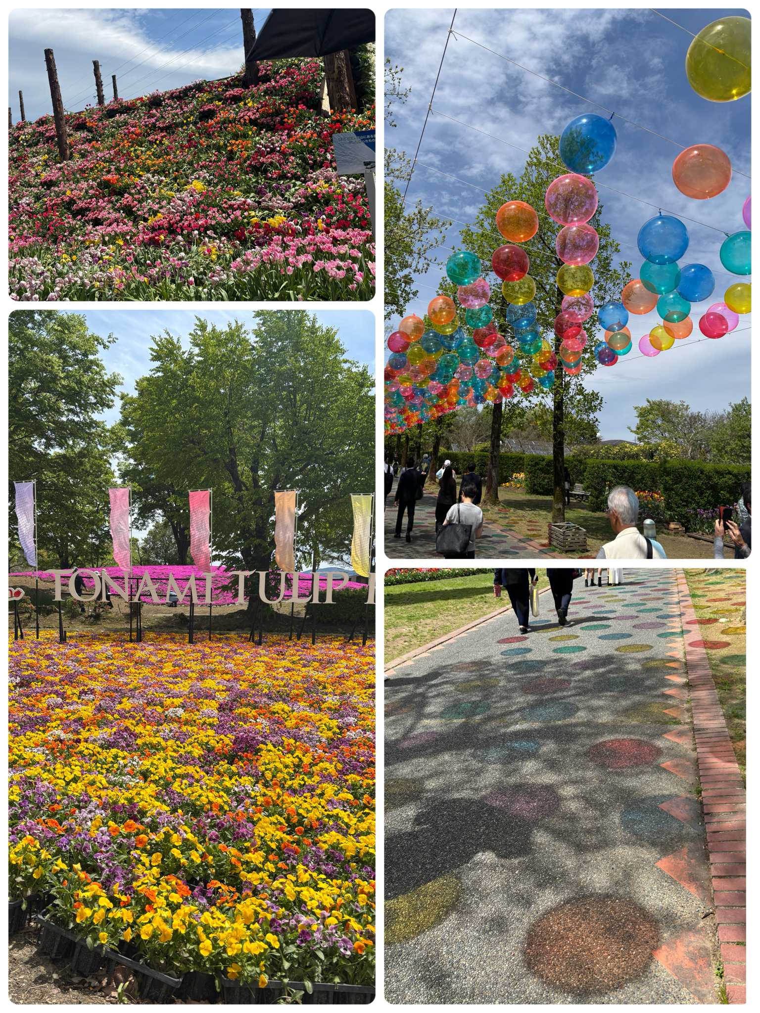 ↖はチューリップの丘。↙はパンジーの絨毯のようですね。