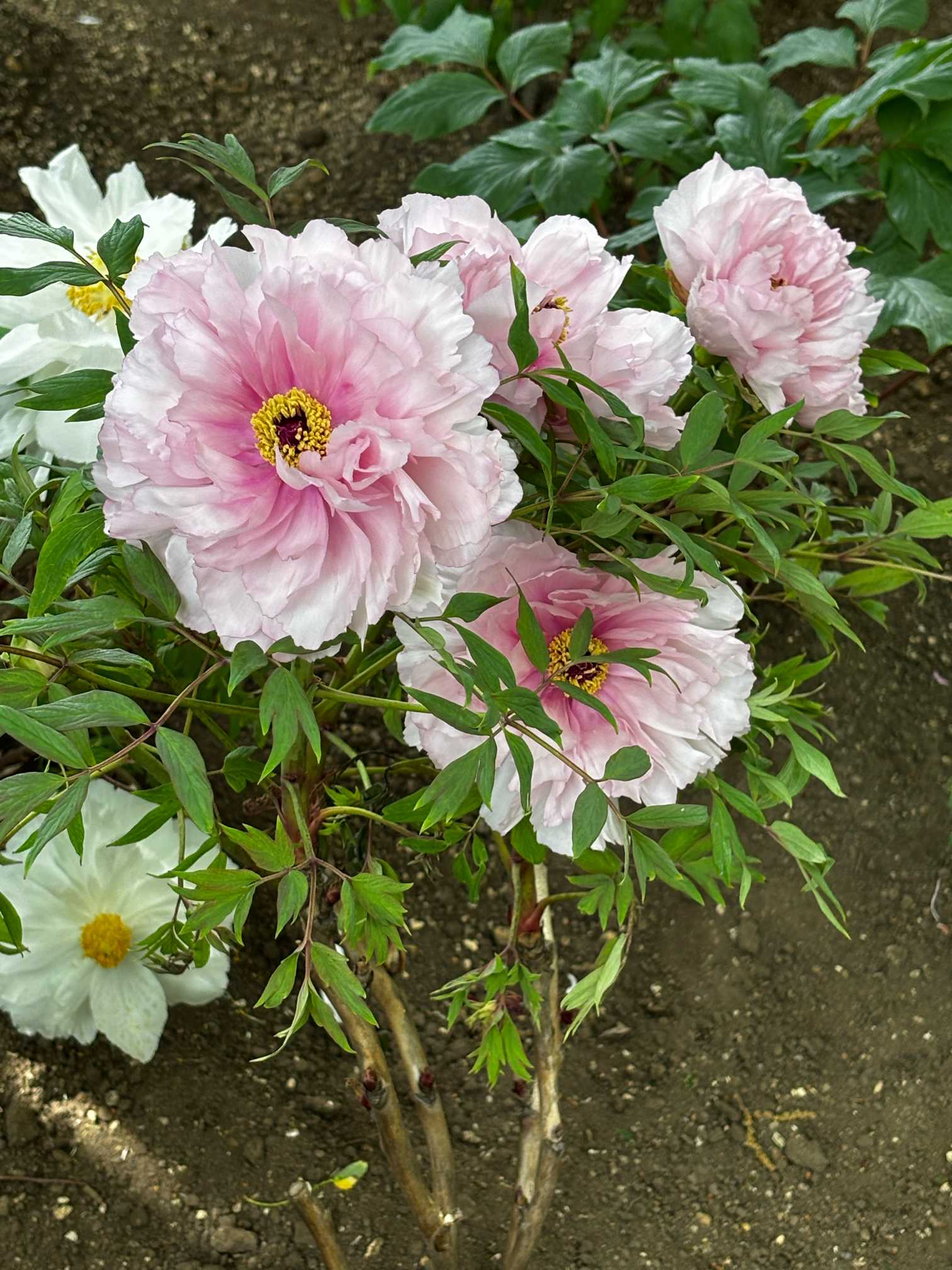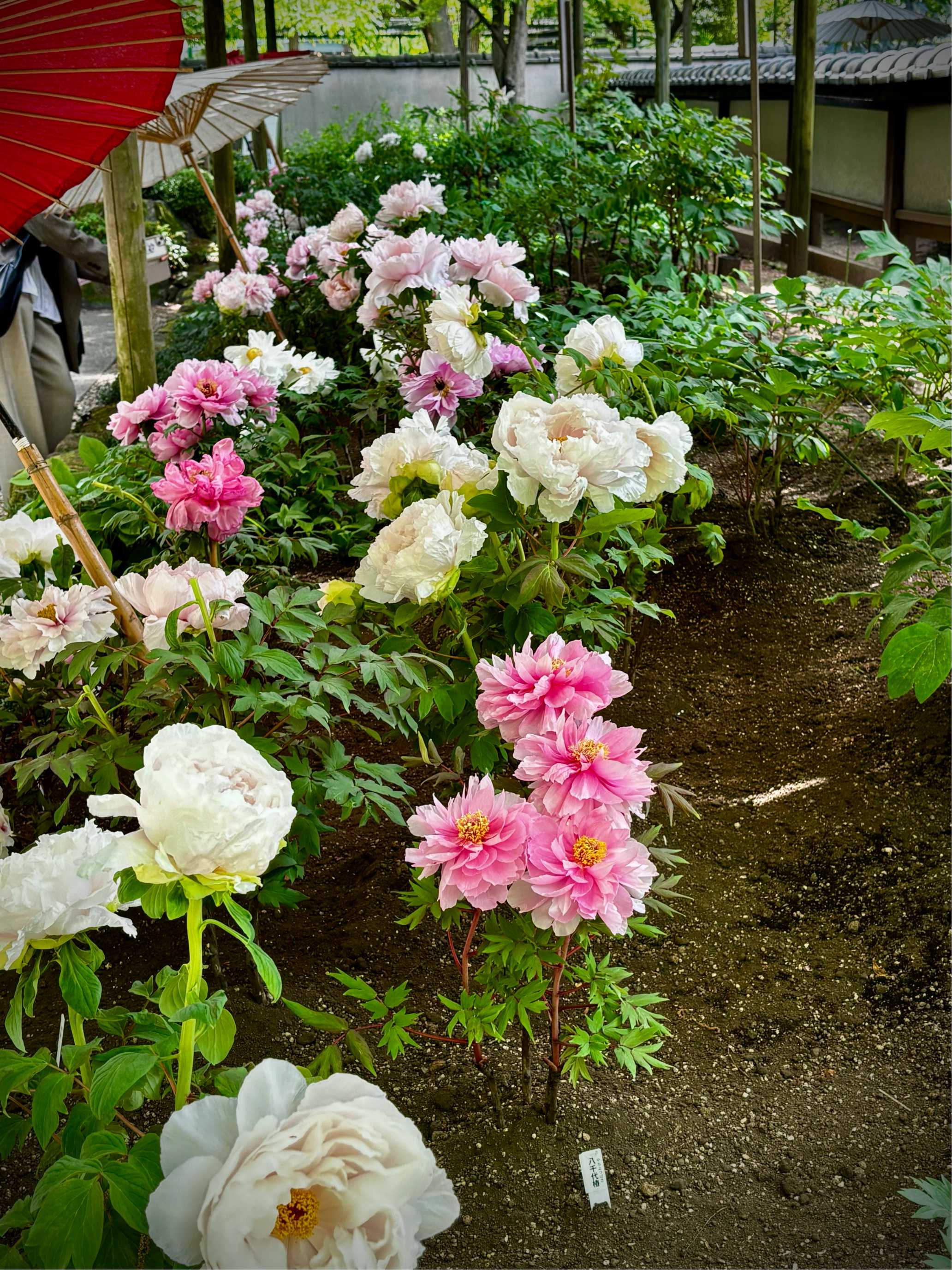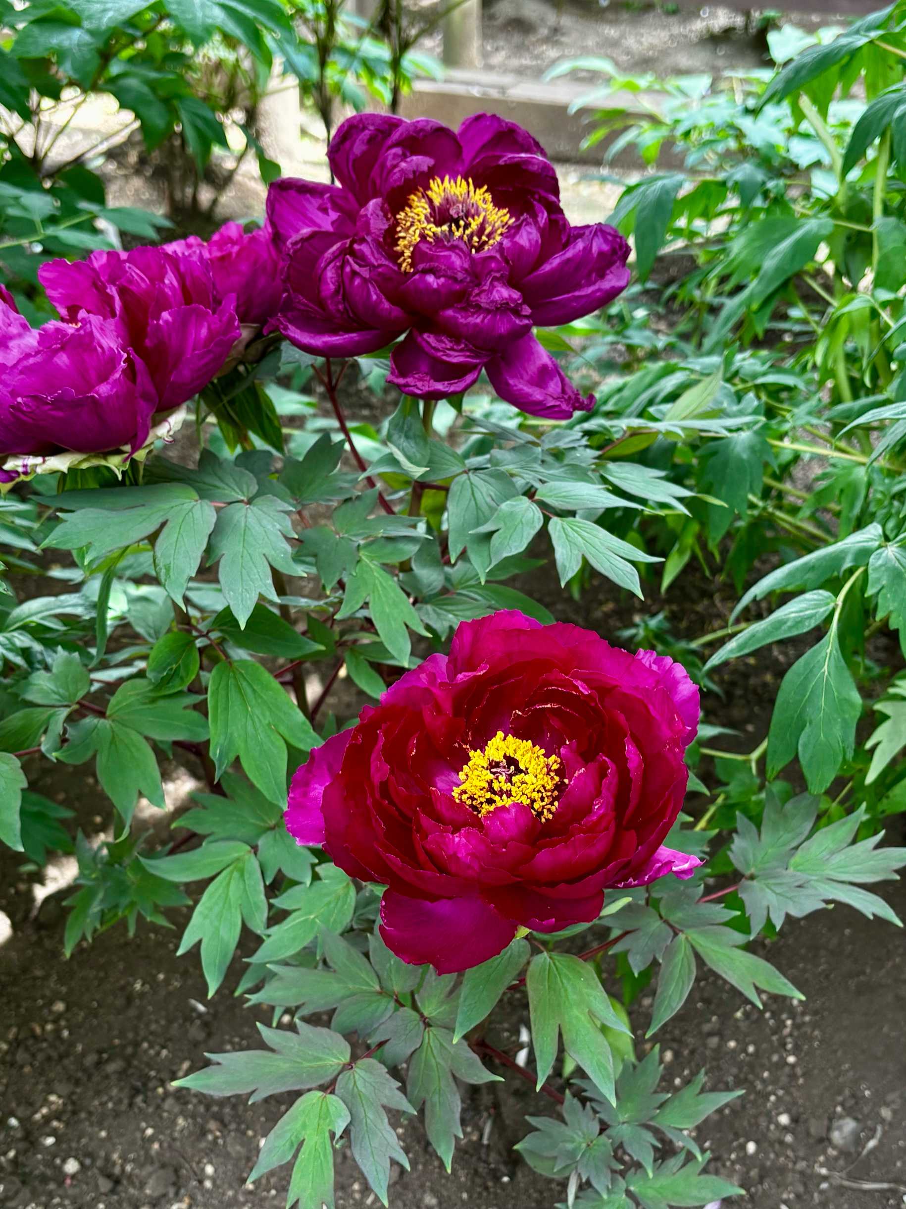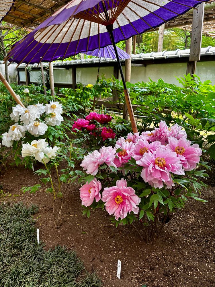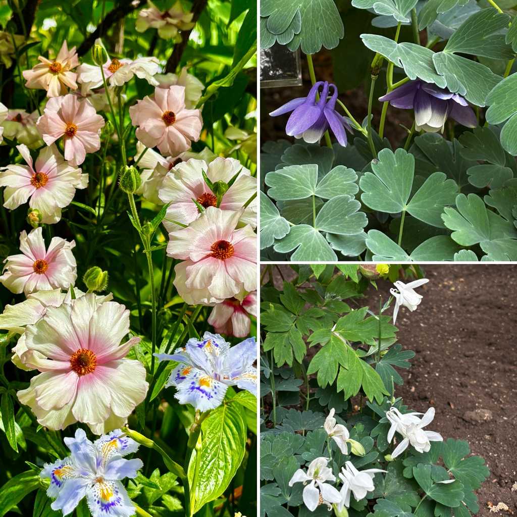 優美な牡丹を心ゆくまで楽しみ、芍薬やイチハツ、ミヤコワスレ、オダマキ…