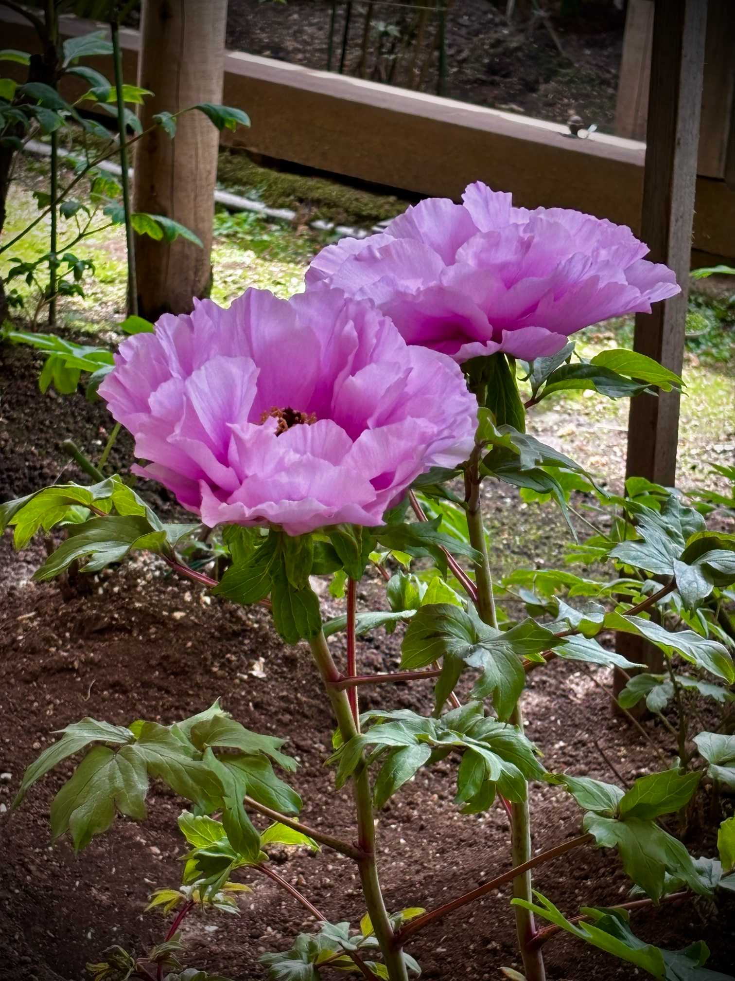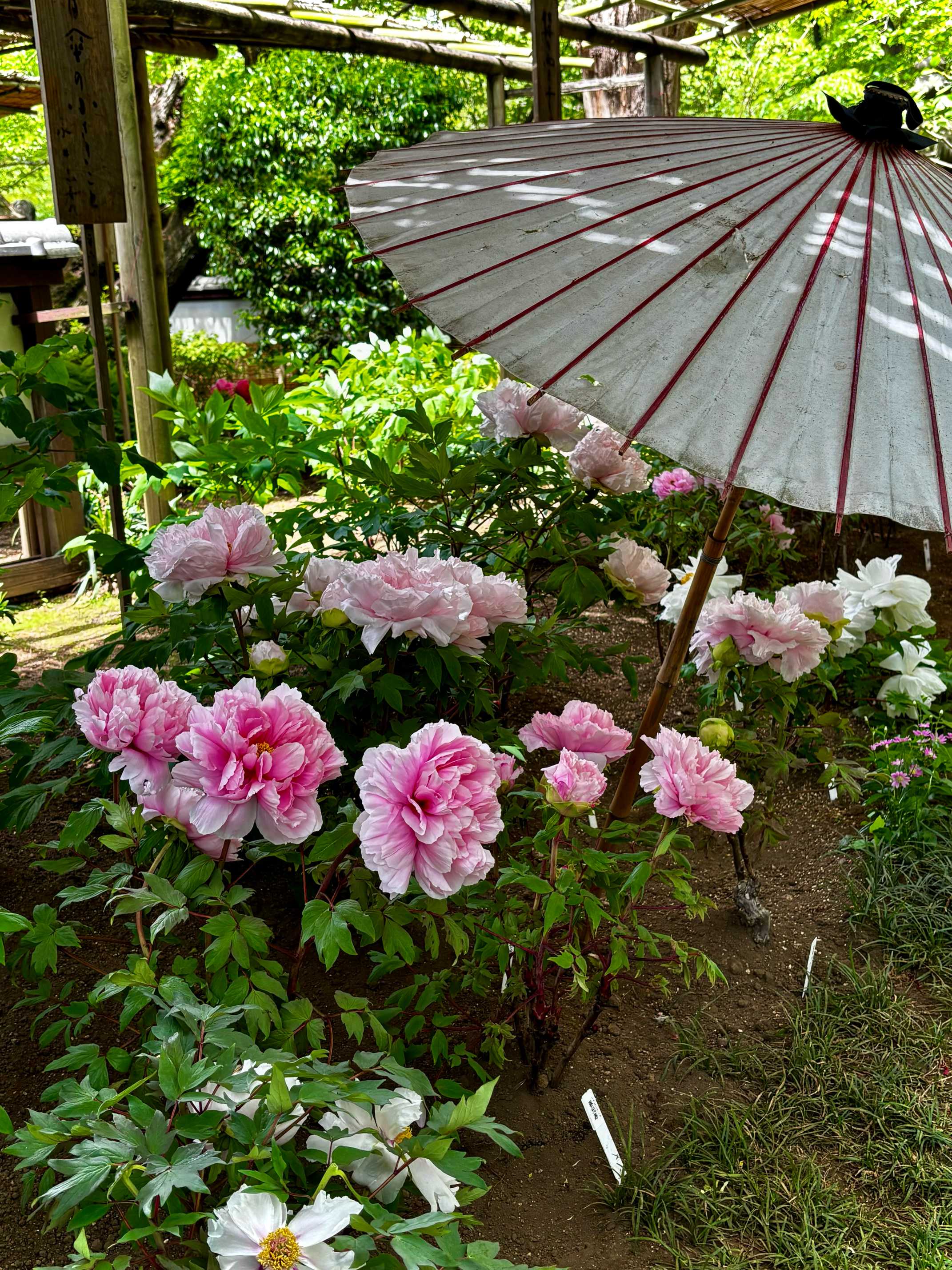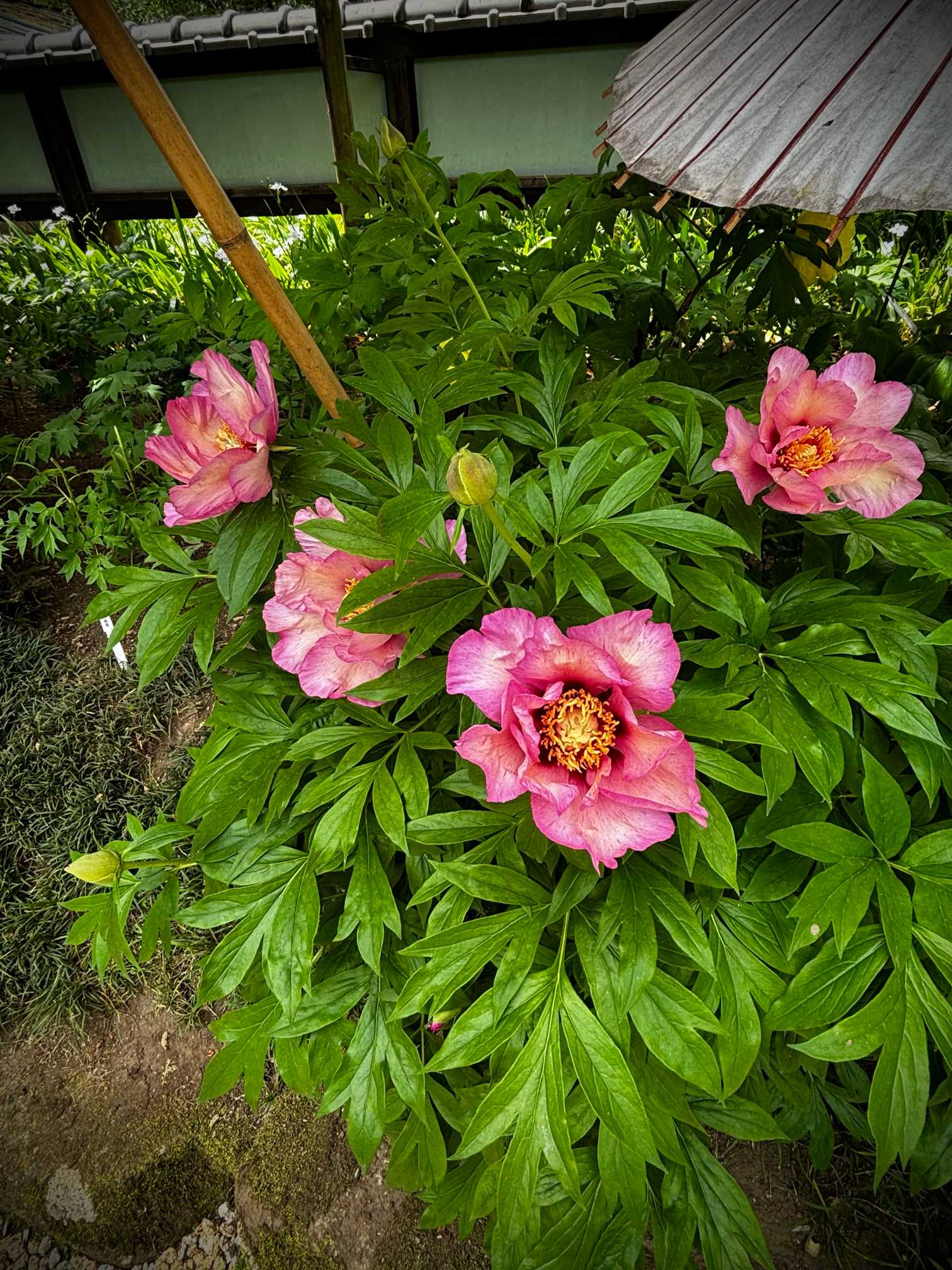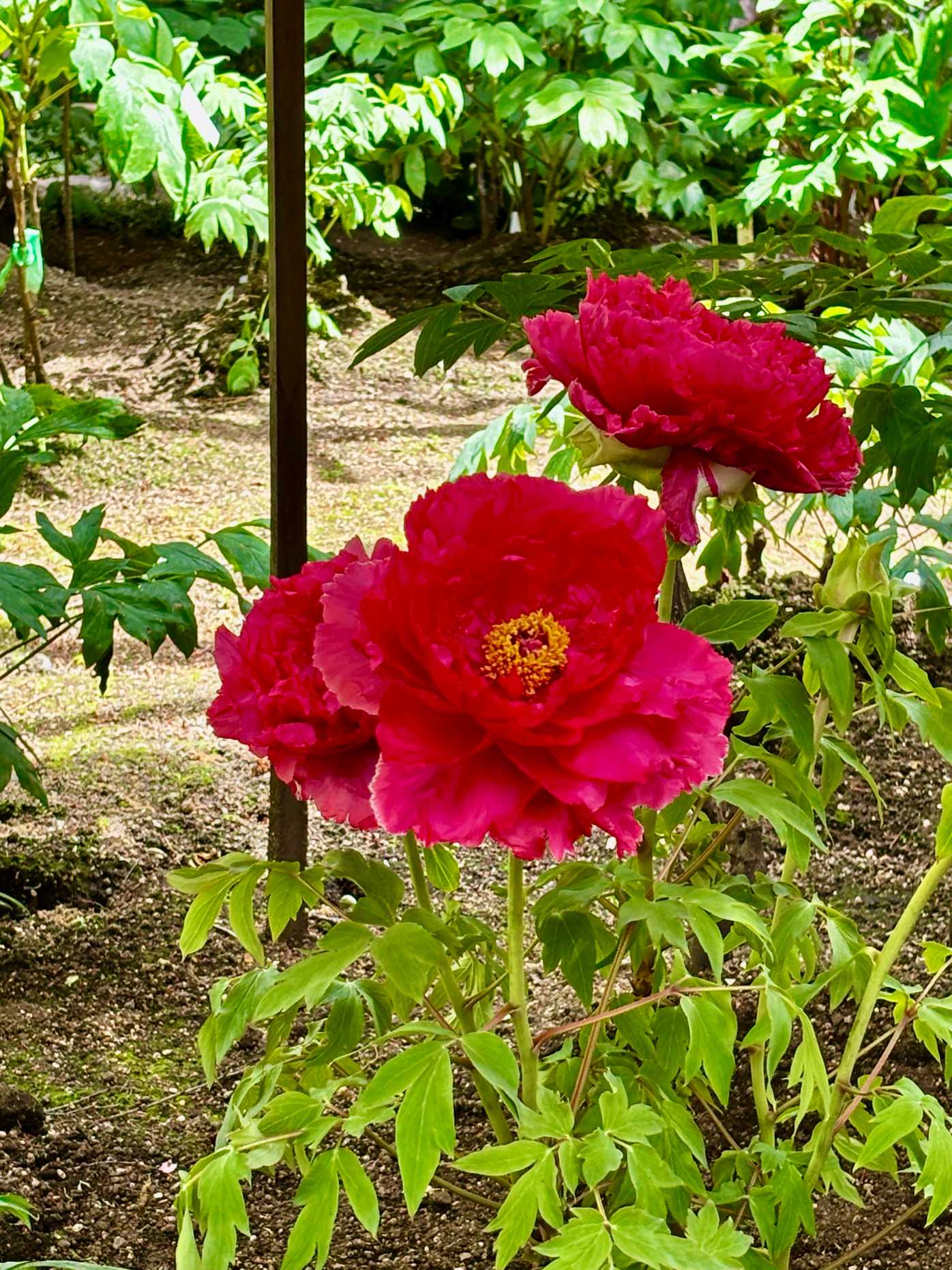 優美な牡丹を心ゆくまで楽しみ、芍薬やイチハツ、ミヤコワスレ、オダマキ…