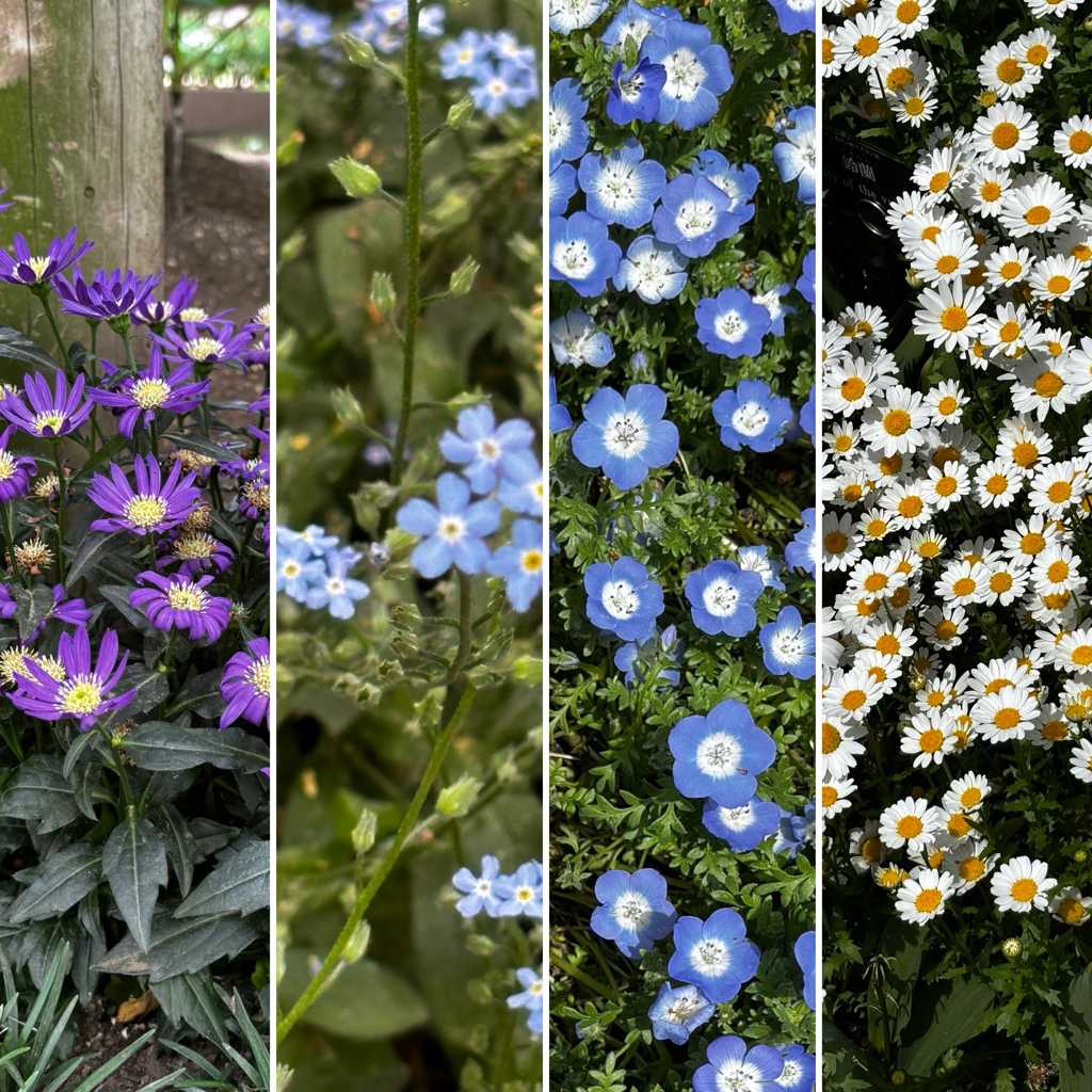 都忘れ、勿忘草、瑠璃唐草、寒白菊。