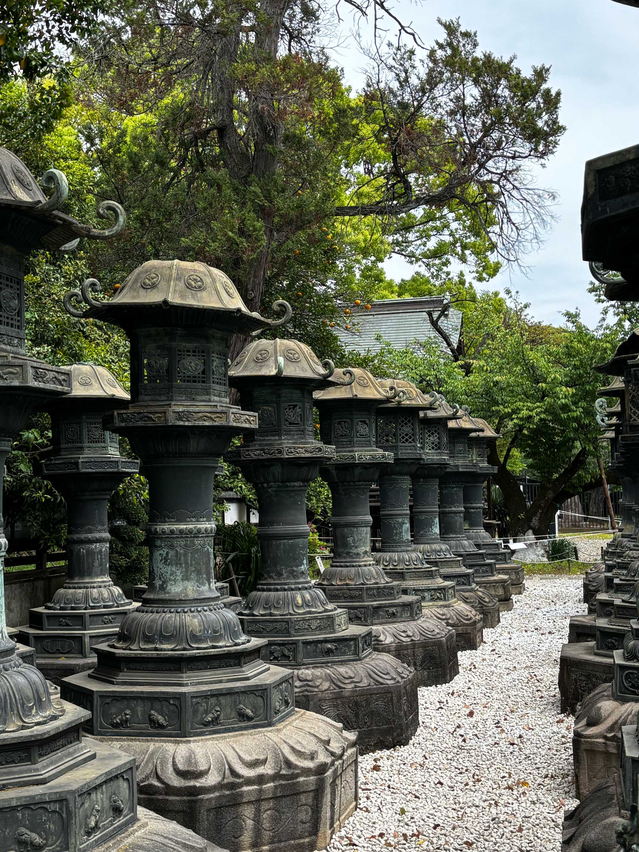 参道には、諸国大名から寄進された石灯籠や青銅灯籠が並びます。