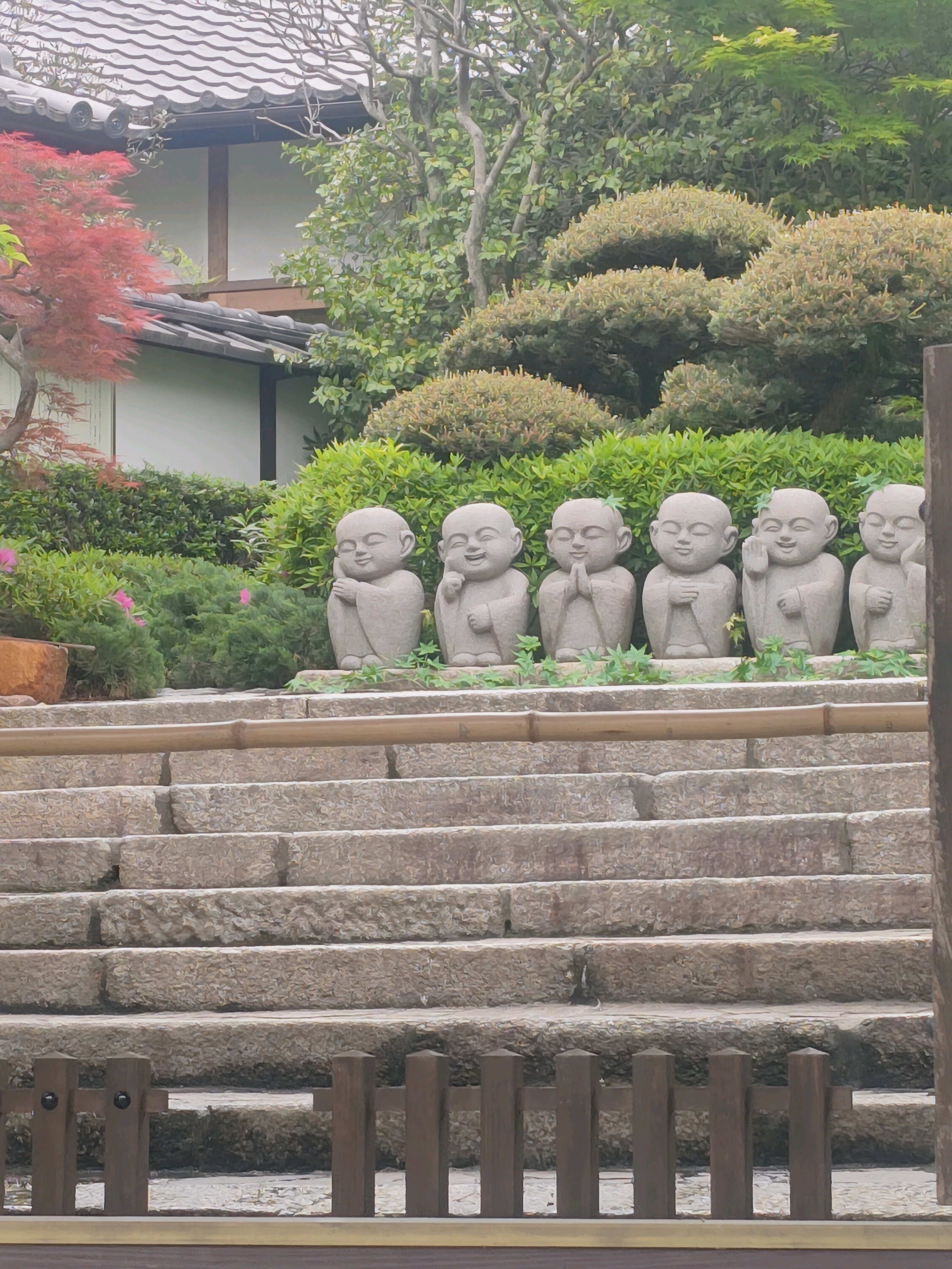 沢山のお寺。可愛いお地蔵様がお出迎え。