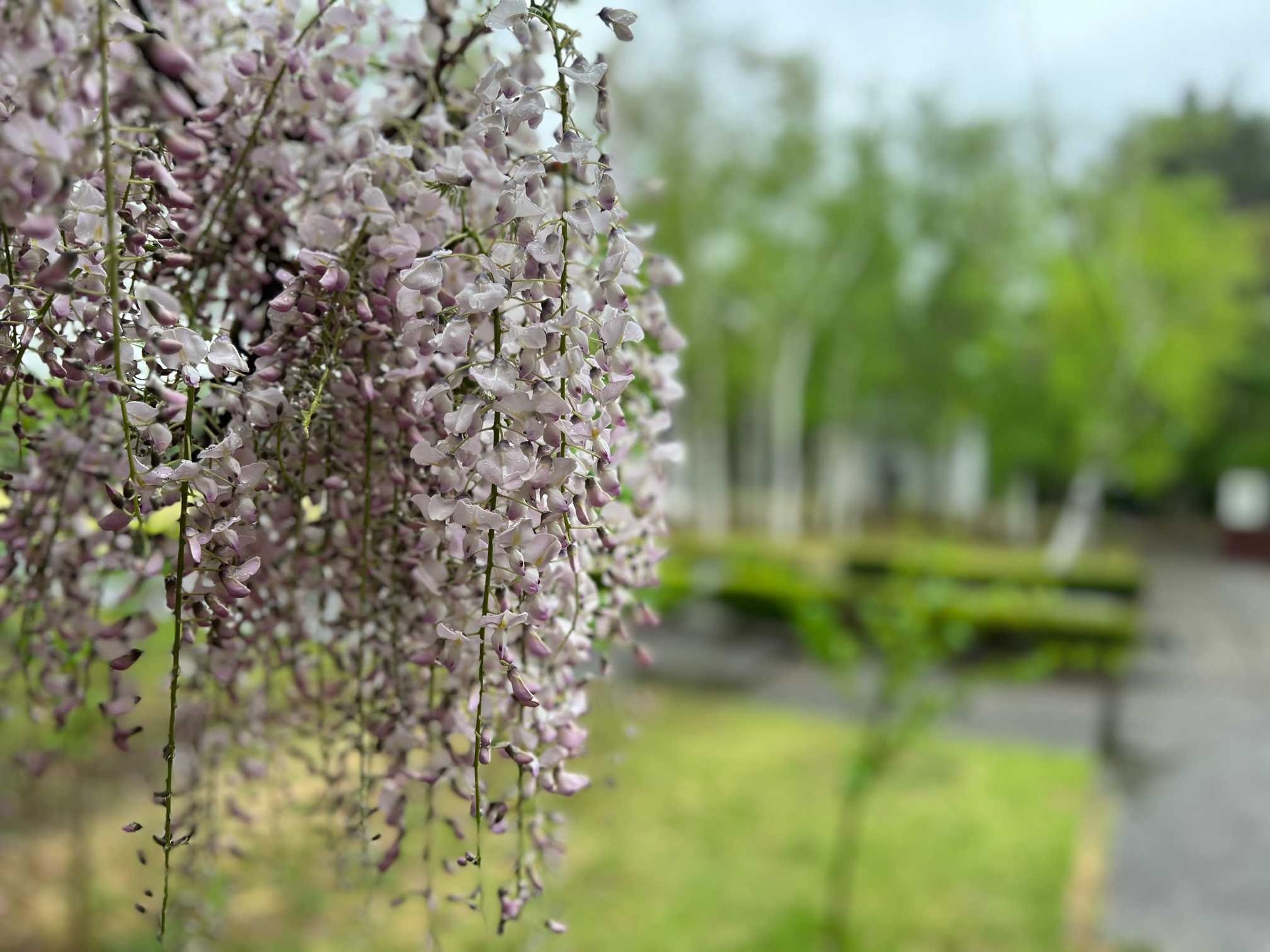 美術館横の藤棚。うっすら紫。香りをお届けできずに残念です