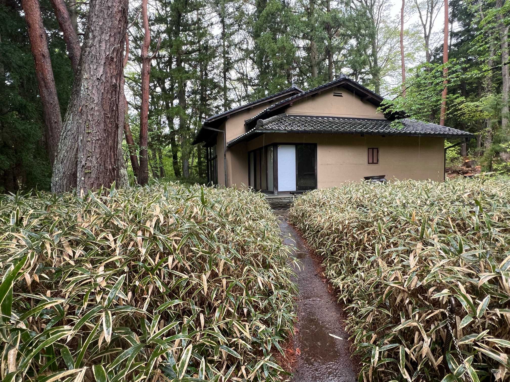 梅原龍三郎自宅。こちらは東京から移築したものです。青紅葉のトンネルは腰を屈めないと入れません