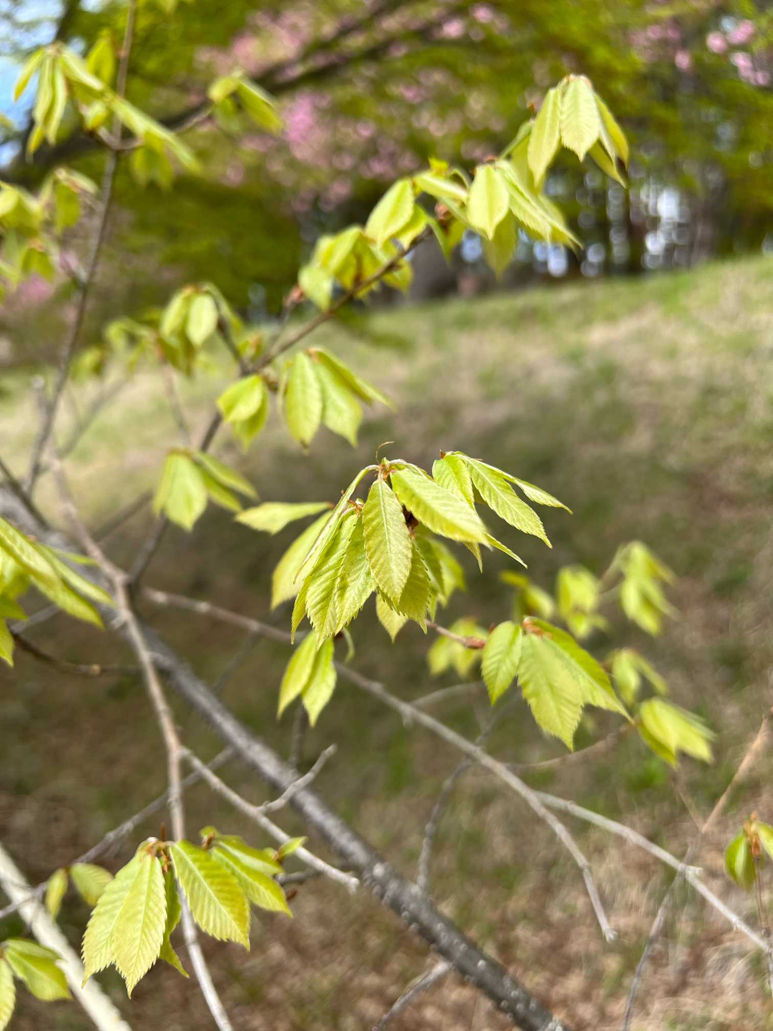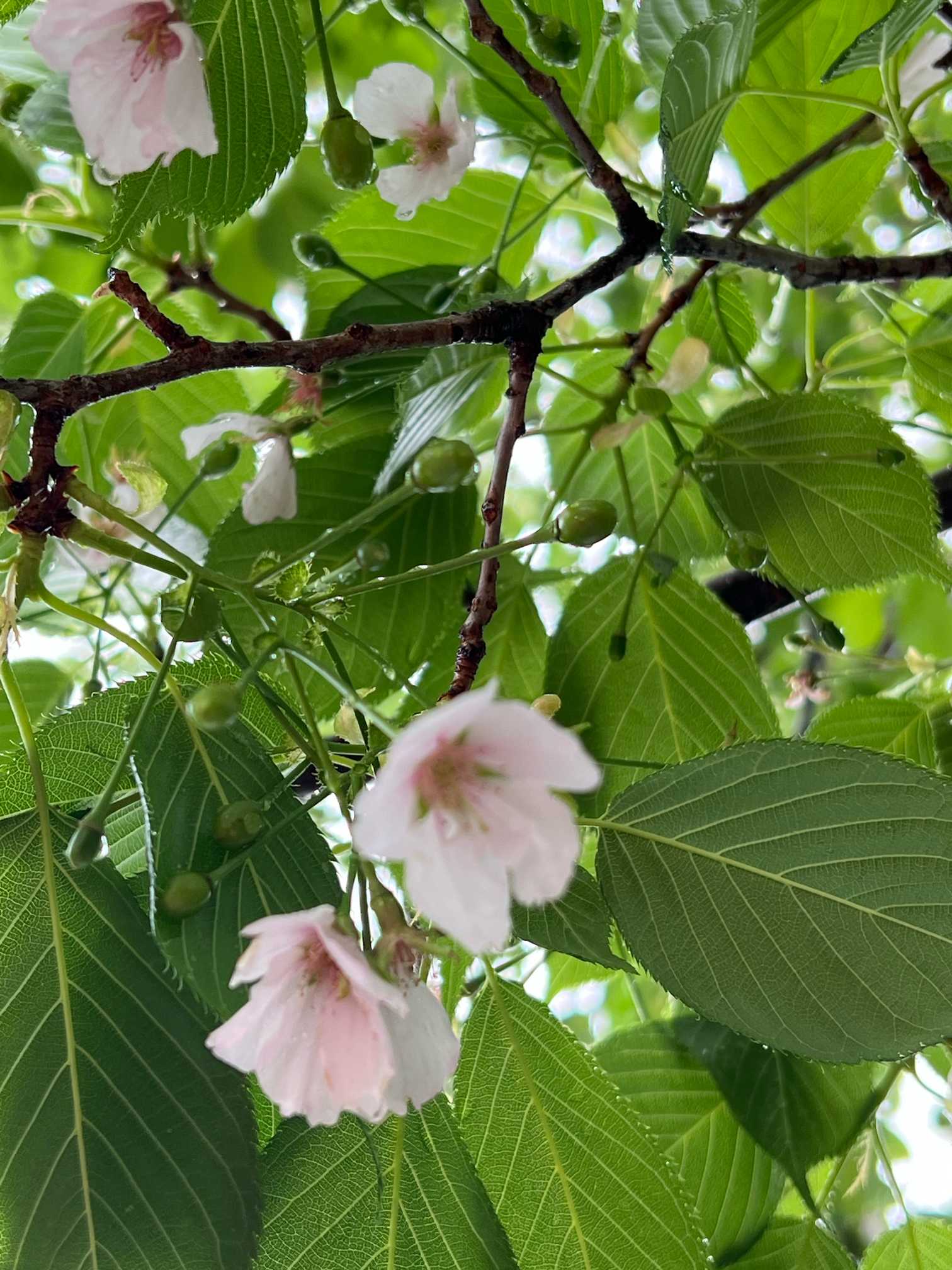 名残の桜、八重桜が新緑に映えて何度深呼吸をしたことか。肺モ心モ綺麗ニナッタ。