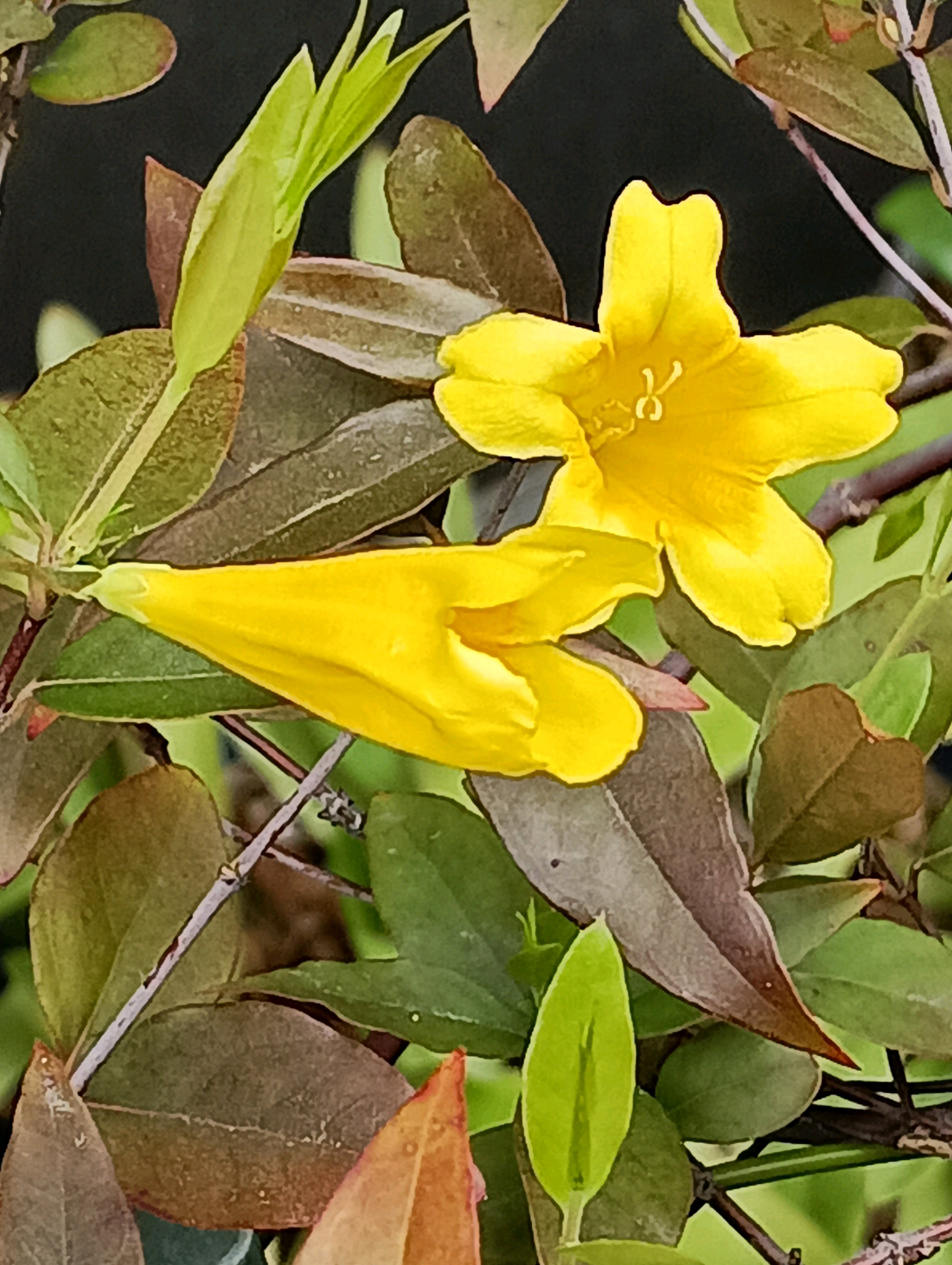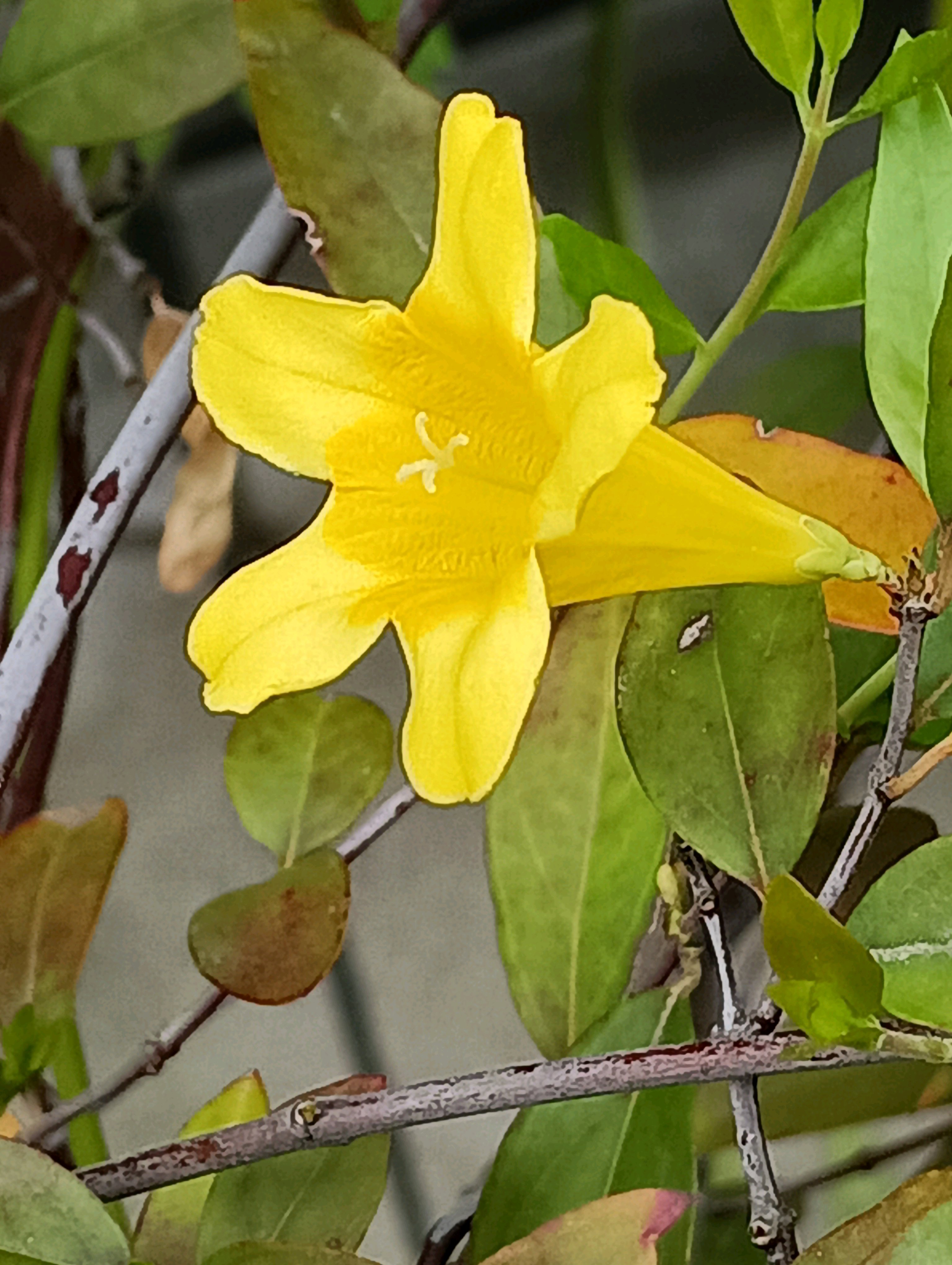 何年か前にたった一本の 挿し木から 毎年毎年可愛いい お花を見せてくれる お花さんです。 *原産地 北アメリカ南西部 亜熱帯、熱帯アメリカ 自生地、サウスカロライナ州では 州の花です *開花期 3月下~7月 *花言葉 甘いささやき 長寿 素直 気立ての良さ *有毒植物 全草に強い毒性 (ゲルセミン)