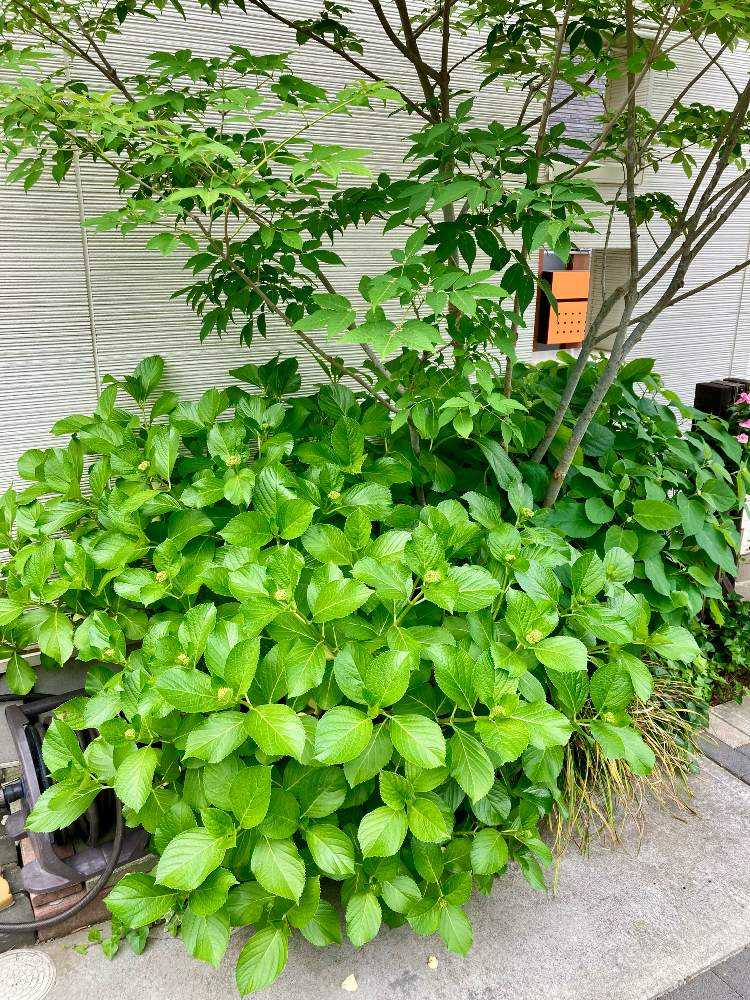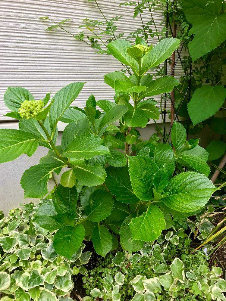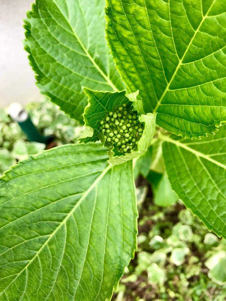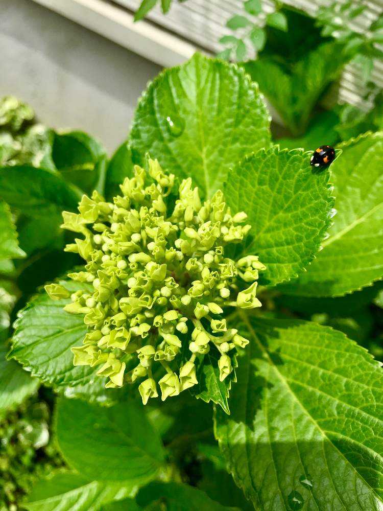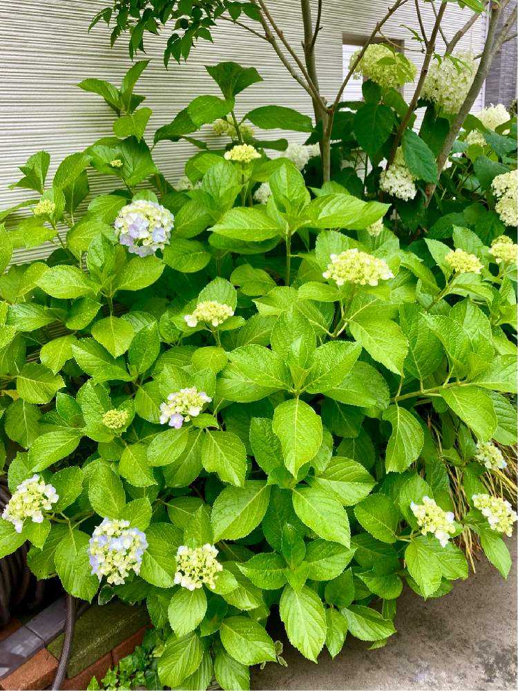 梅雨入りして、近所ではすっかり色づいてる紫陽花が多い中、我が家はガクが小さく、やっと色が変化してきたところです