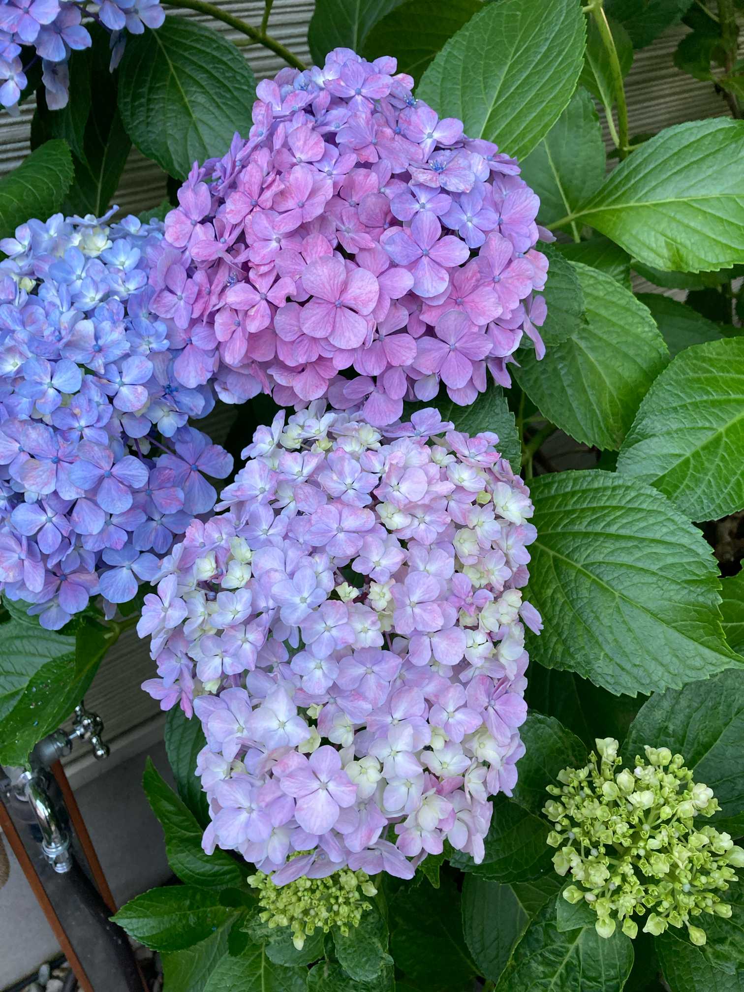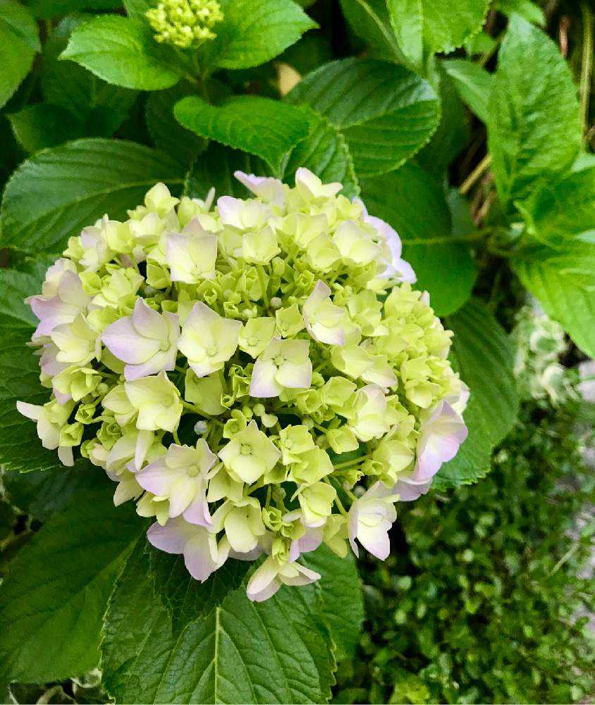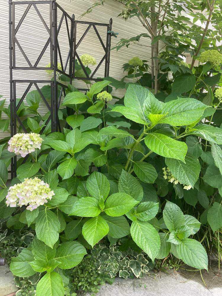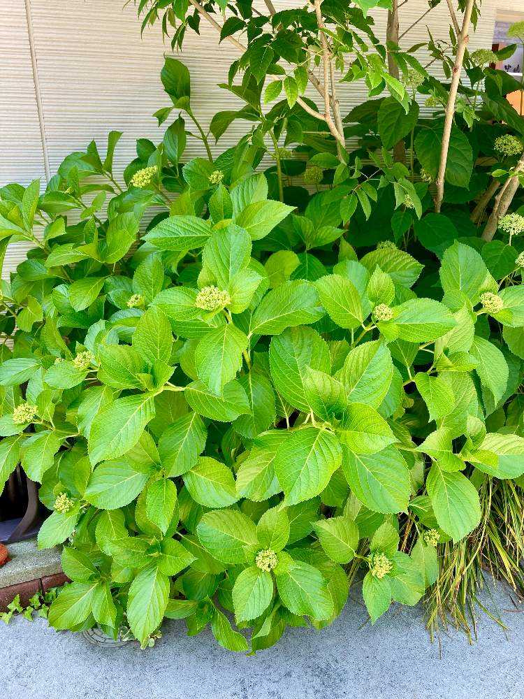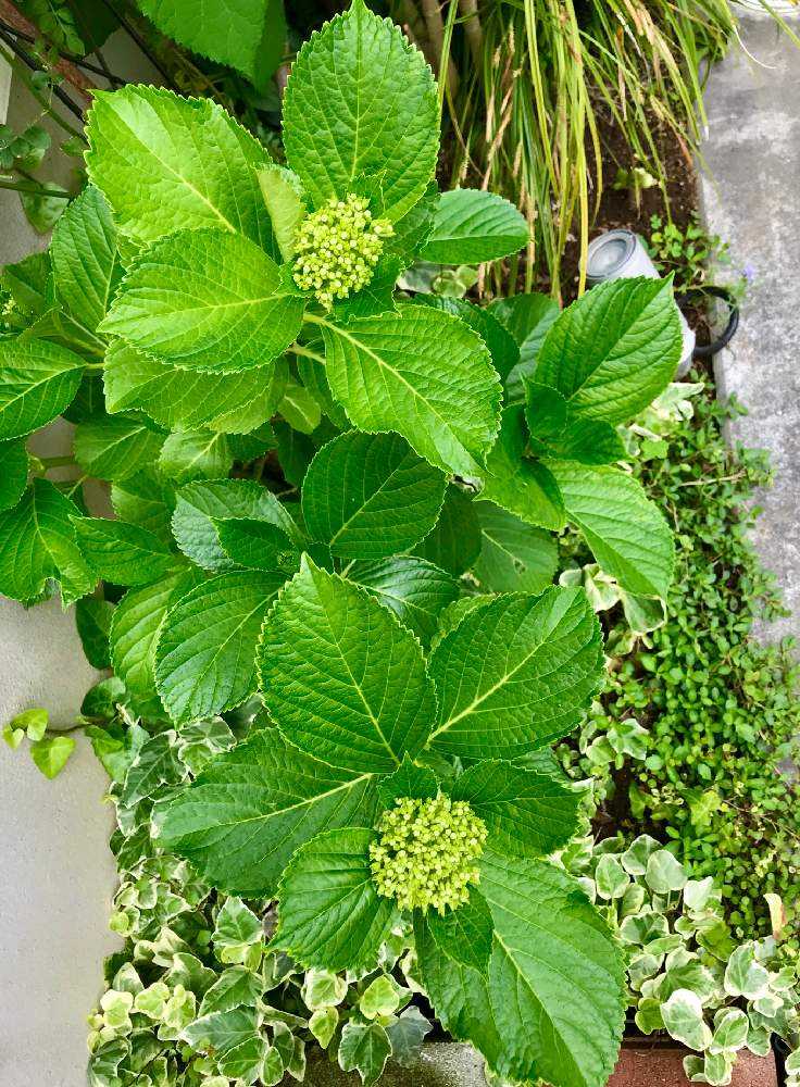 梅雨入りして、近所ではすっかり色づいてる紫陽花が多い中、我が家はガクが小さく、やっと色が変化してきたところです