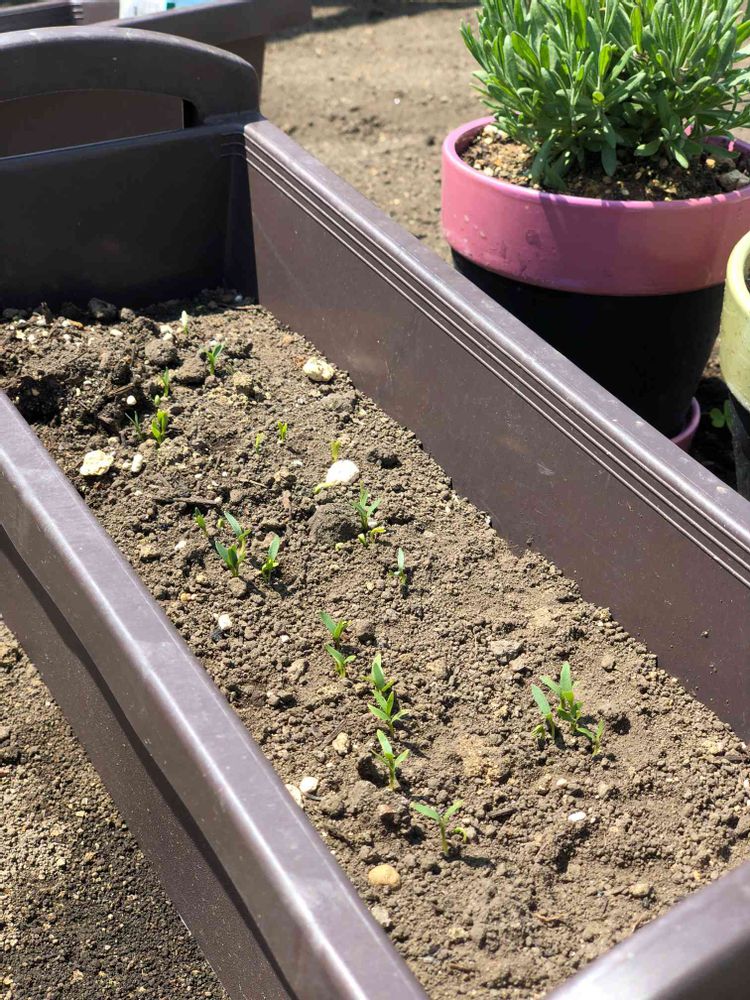 2019.5.7 種まきから3週間が過ぎ、順調に育っている気がする‼︎よく見ると花の蕾のようなものがついている芽が🌱