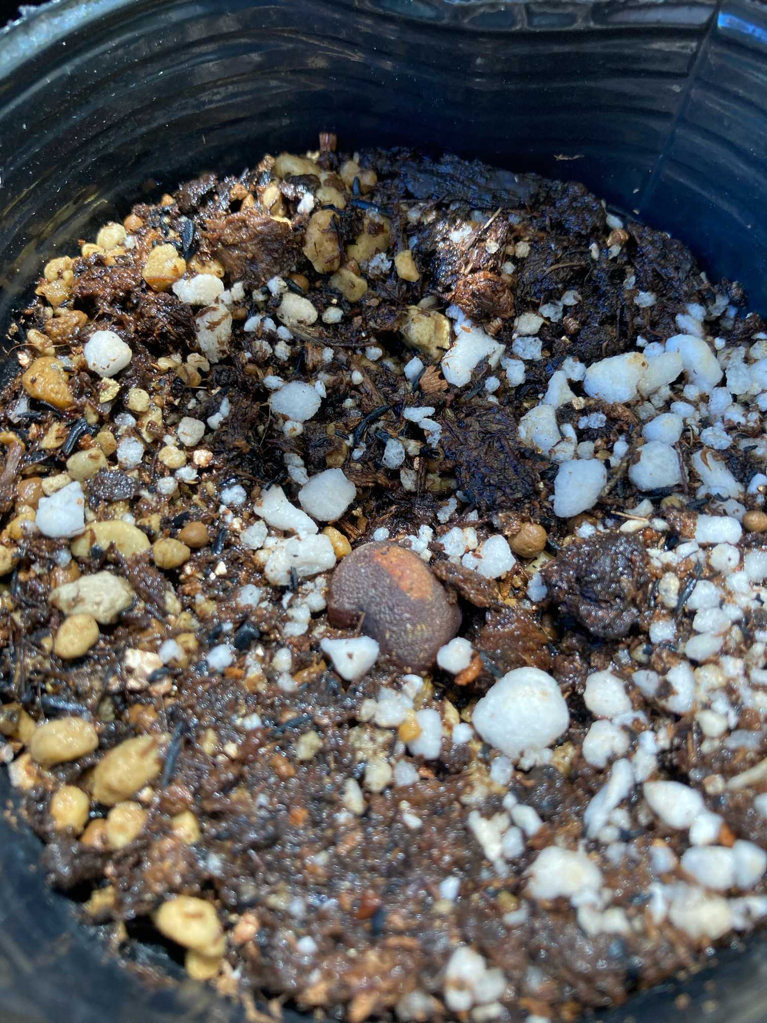 せっかくなので少し太くなった塊根部分が見えるように植え付けました❤️