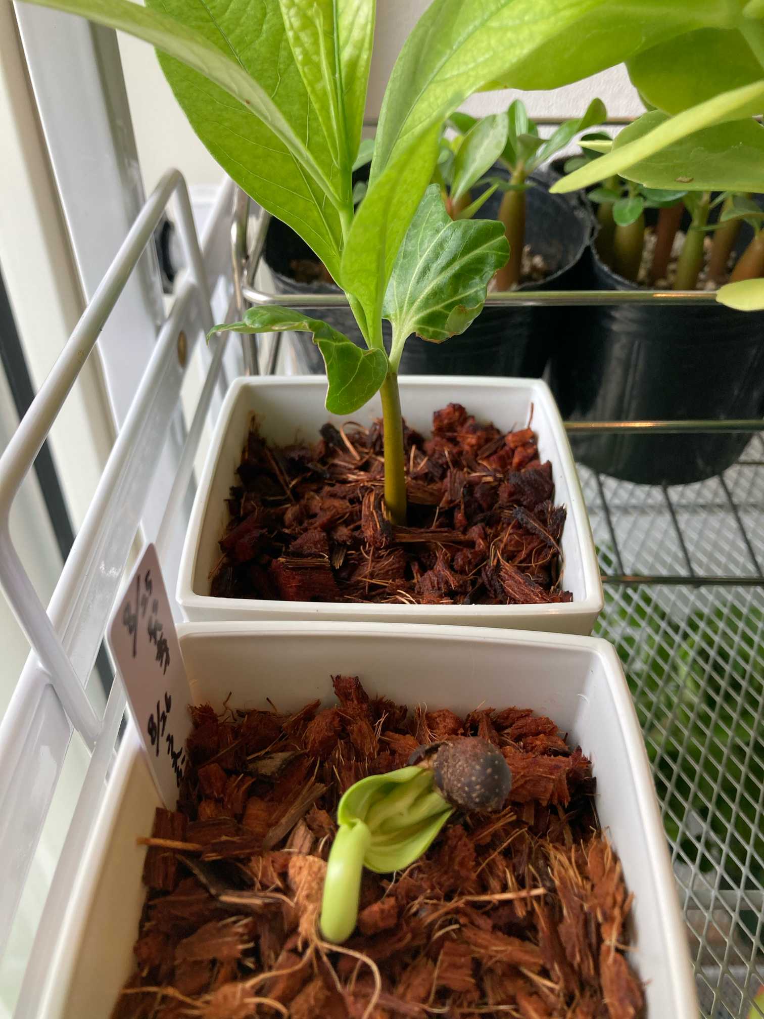 手前にあった殻が少し破れたまま変化の無かった種は、やはり腐っていてダメでした😢