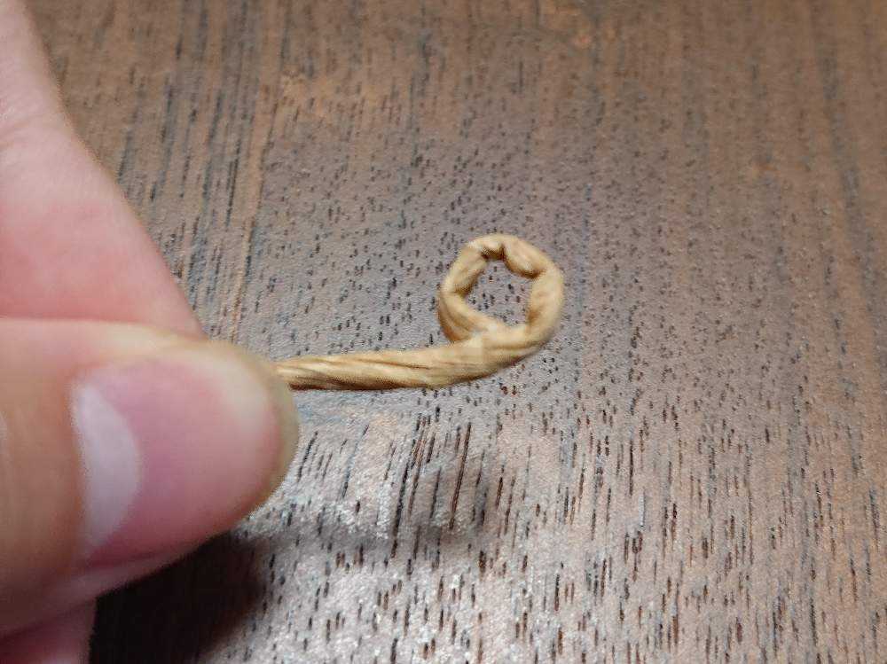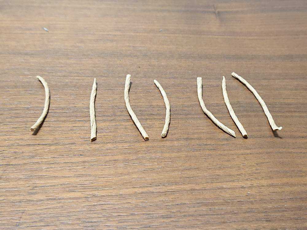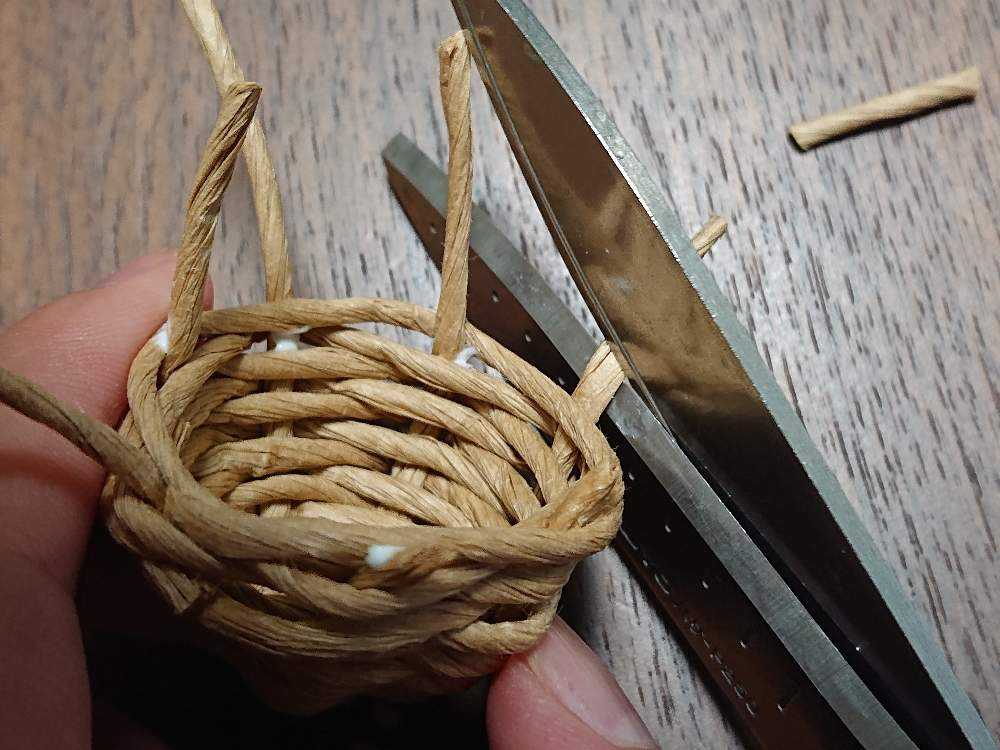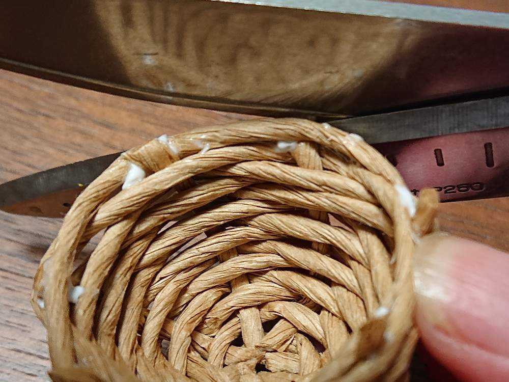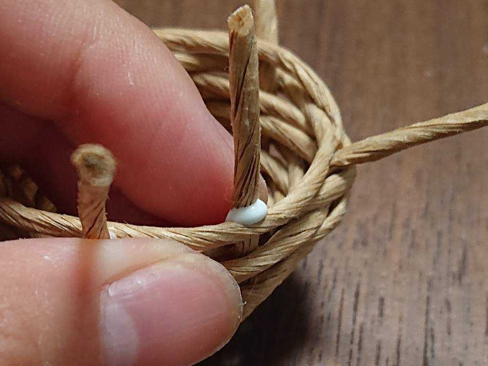 ボンドが乾いたら、少しはみ出た7本の紙ヒモを見えないように切ります。