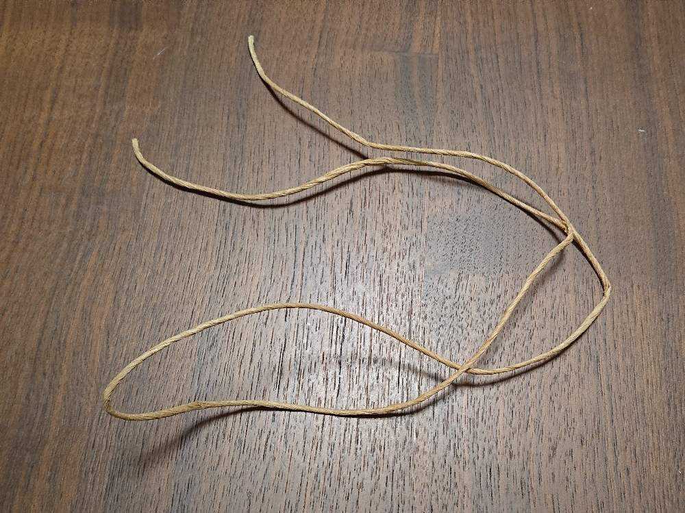 カゴに取手を付けたい時は、カゴと並べて、このくらいの長さに紙ヒモを切ります。