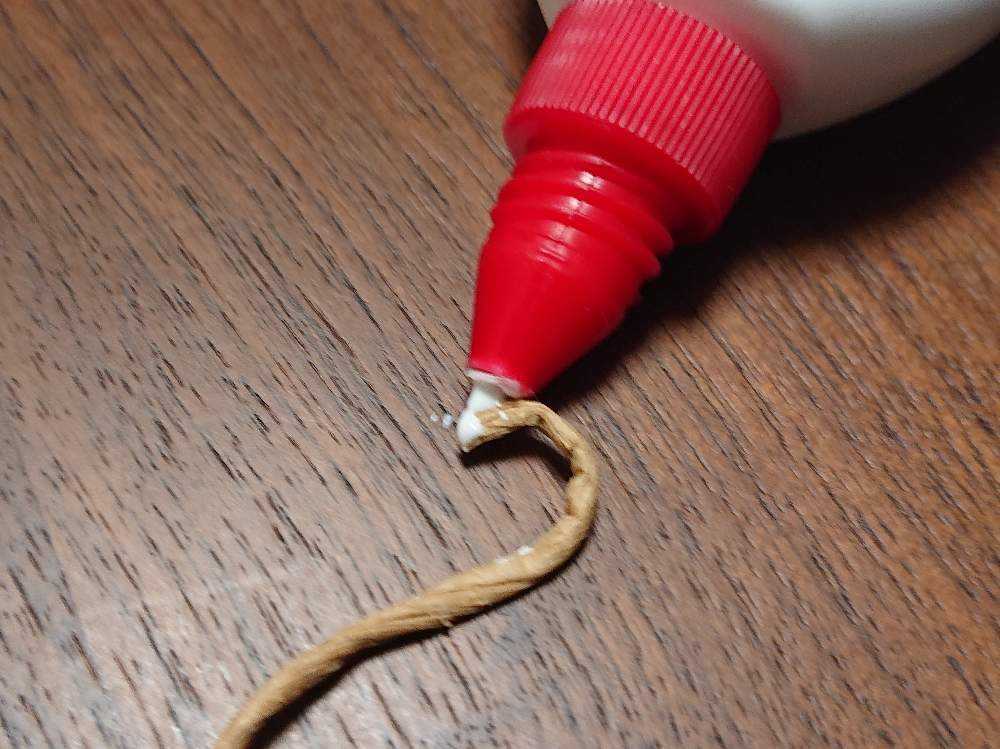 最後は先端にボンドを付けて、すき間に通して付けます。