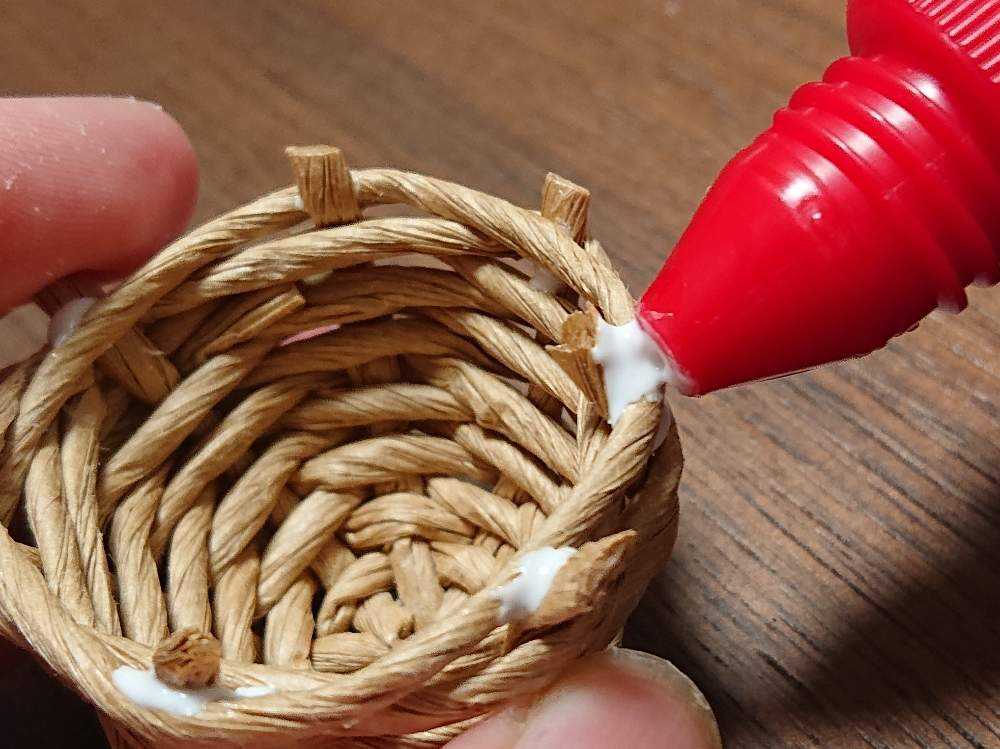 はがれないように、7本の紙ヒモと巻いた紙ヒモをボンドで付けます。