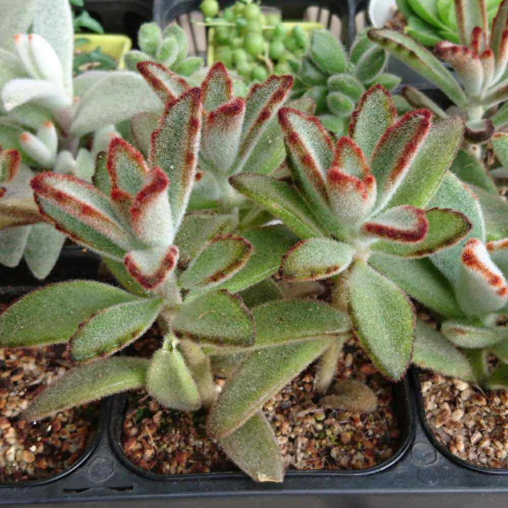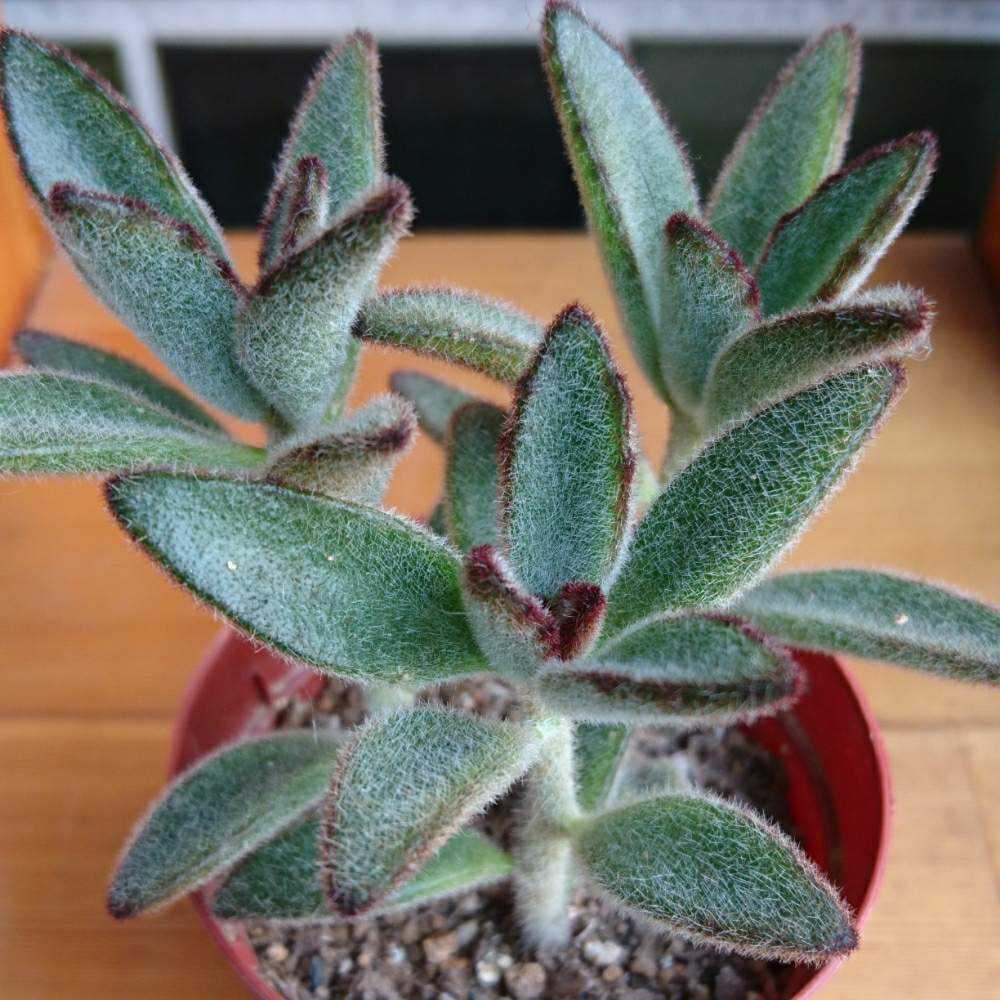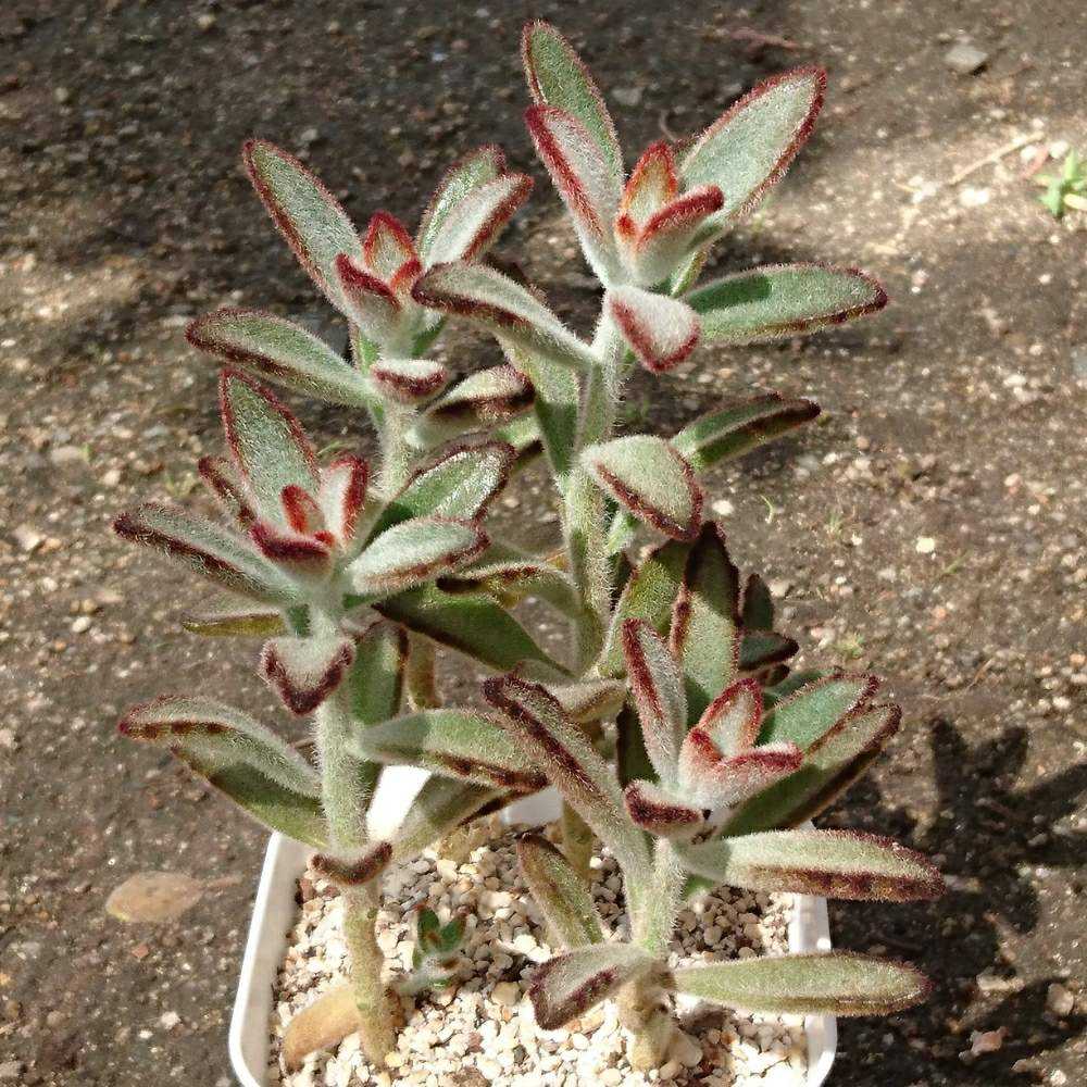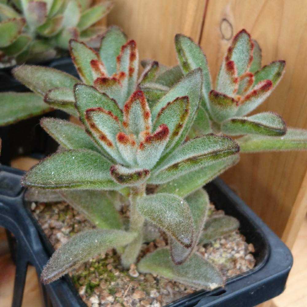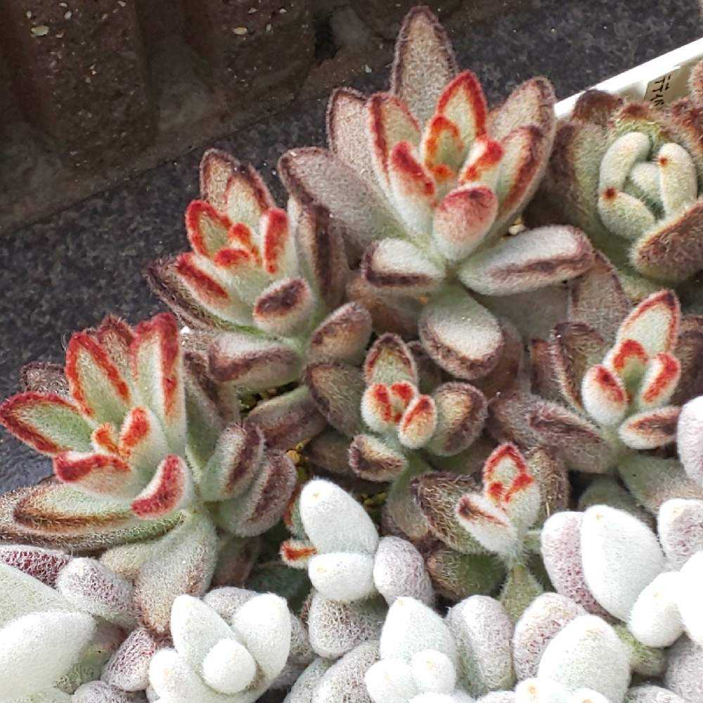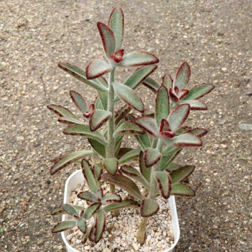 この子はまぁまぁ寒さに強そうだ。水を完全に断ち乾燥した状態でなら軒下の多肉棚で冬越しできる。しかし、葉が縮こまり落ちるので、夜帰宅時に室内に入れ、出勤前に軒下の南向き多肉棚の東列4段目に出す方法で冬越し。