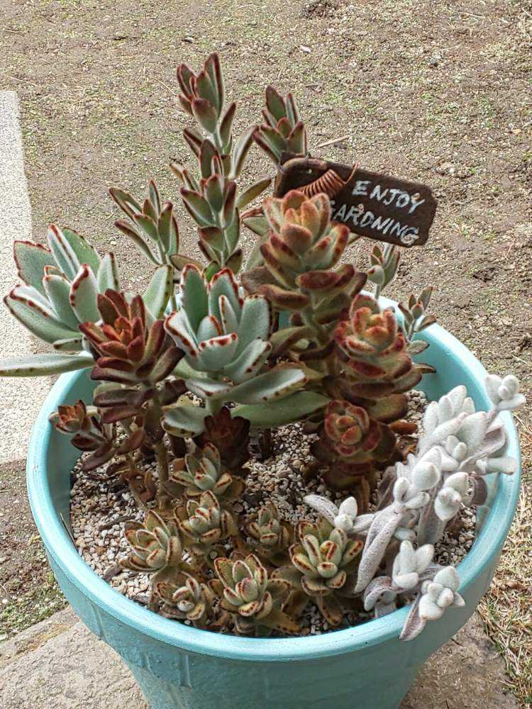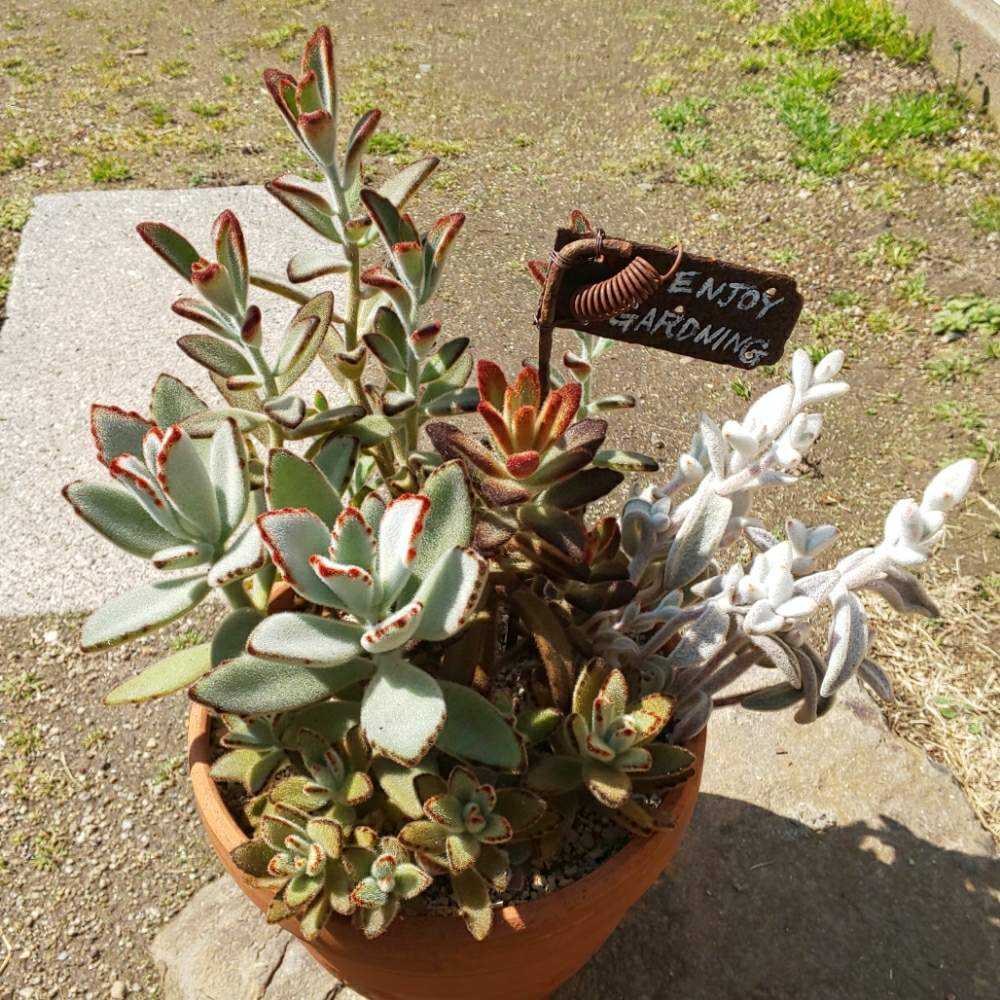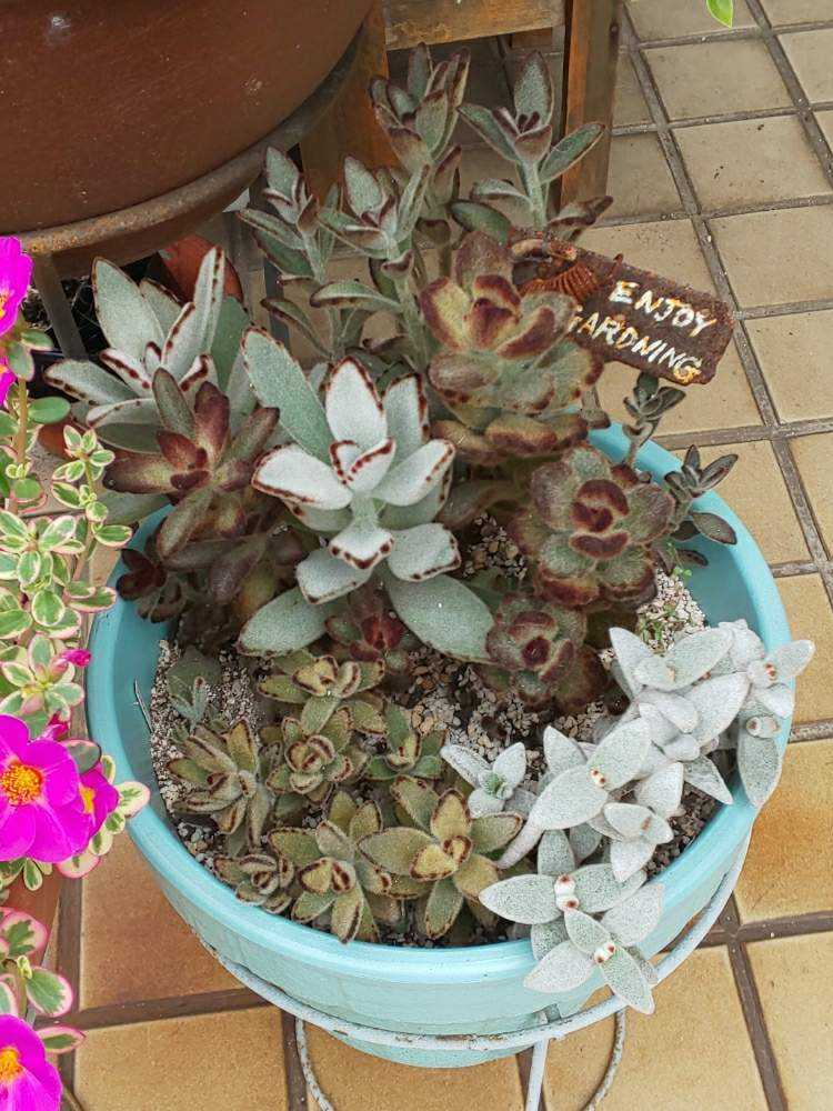 🌱9/17 冬に室内に出し入れするために、兎系5種を素焼き鉢6号に鉢まとめ&作業後に頭からシャワーで水やり