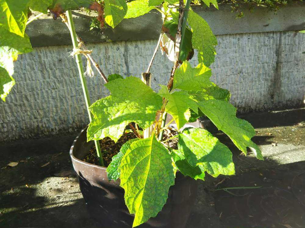 葉っぱがしんなりしてきたので、半日陰に移動