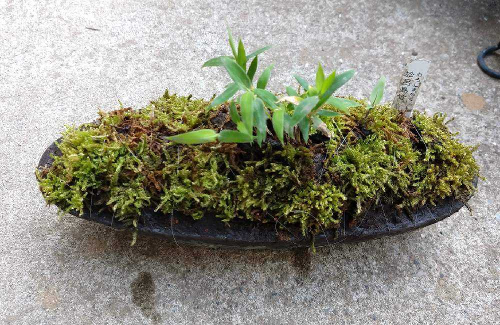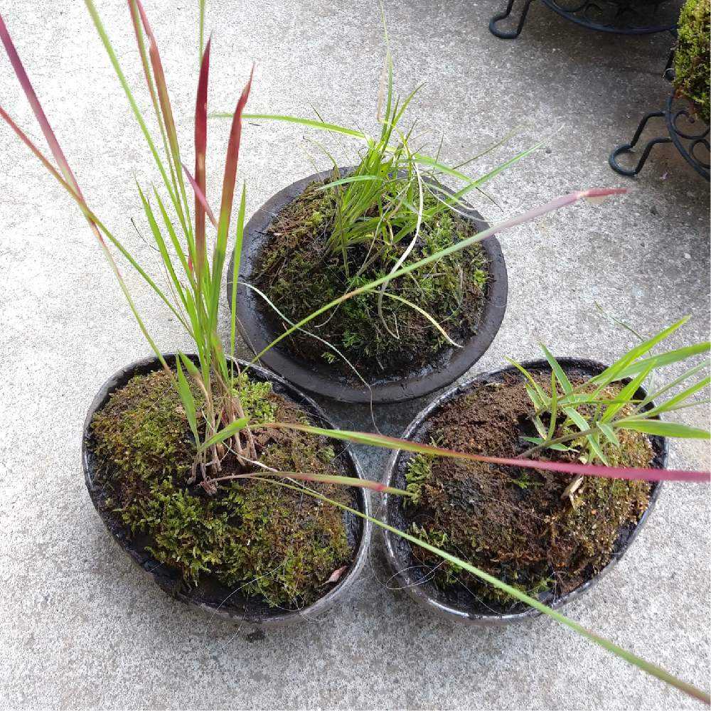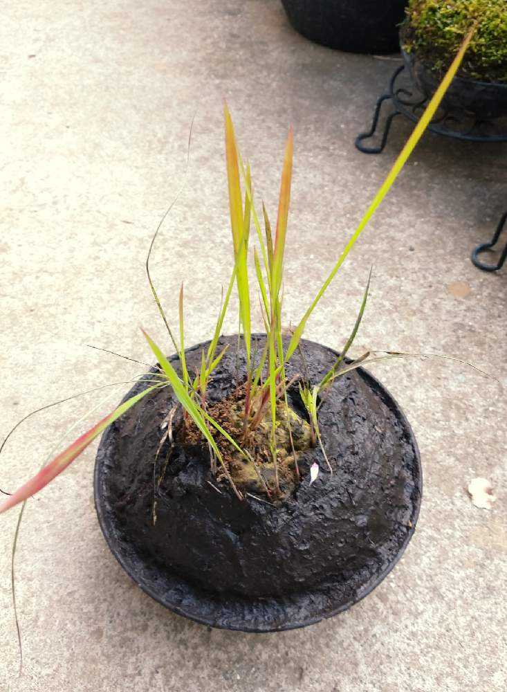 用土が余ったのでインスタントラーメンのカップに植えつけてあったベニチガヤも小山飾りに仕立てることにしました。