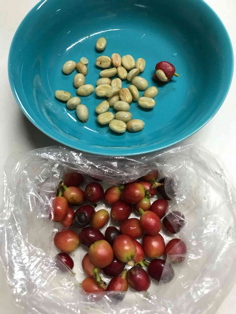 コーヒーの実を戴いたので13 粒は種まき用、