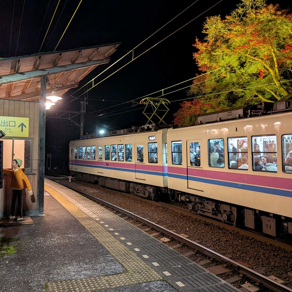京都 夜の叡山電車に乗って紅葉(こうよう)を愛でる