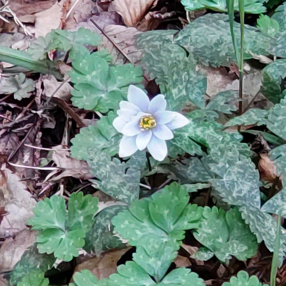 No.760 散歩道の植物とお散歩ちゃん4月①クサイチゴ、ニオイイリス、ムラサキケマン・・...