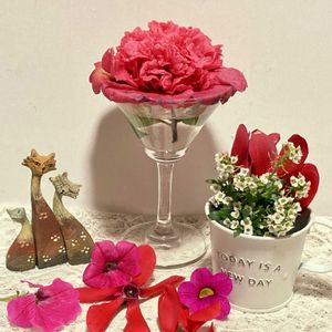 真っ赤な火曜日🏷️ お部屋の中でお花飾って 見ました 外国つばき 日の当たらない場所で地植の子 シクラメンとアリッサム 寄せてパチリと