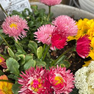 こんにちは😃 ①今日のお花🌸🌼 デージー🌼🌸まだ小さな苗🌱で一輪づつ咲いてます ②③ リュウキンカ🌼🍀 ④ ガーデンシクラメン🌸🍀٩(๑❛ᴗ❛๑)۶💕