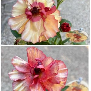 幼苗から育てて今年はじめて咲きました🥰八重咲きで赤いドット(スポット)が入ってます。