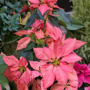 花散歩で✨ ❤️💚💛💚🤍💖🩷🤍🌿🤍🩷💚♪ 1️⃣ポインセチア 2️⃣ミニ水仙 3️⃣ストック 4️⃣ノースポールと アリッサム 5️⃣シクラメン 今日も 笑顔😄で 過ごせますように💐 大きなポインセチア❤️ いつも玄関前の花壇で色々なお花を楽しませて頂いています🤩 昨日も撮っている時に🤳✨ 自転車でお帰りになった主様から〜🚲️ 有難うございます! 趣味で育てています🗣️ と言われました😳 不審者扱いはされたことはありますが~😱 お礼を言われてビックリ😄 いつも拝見させて頂いているお礼とともに〜🙇♀️ 沢山撮って戻りました🤗