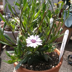 こんにちは〜☁ 紫外線が、気になる季節がやって来ましたね💦💦 ①オステオスペルマム ✂️して15日で開花しました🎵 ②花アップ ③ネモフィラ ひこうき☁と一緒に📸