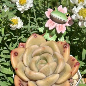 ムッチリ美多肉にお座りコポたん 😽 さくらの花びら首かけて何思ってるのかしらん❓😸 🏷️6日はカエルの日 🏷️ムッチリぷくぷくの日 参加です🐸