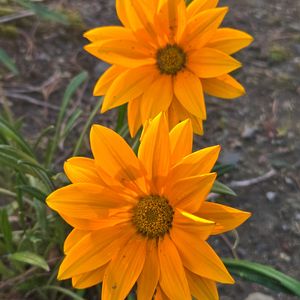 おはようございます😊☁️☀️ ①ガザニア ②ガーベラ ③ペチュニア ④八重咲きペチュニア ⑤🐶蘭丸くん🐾