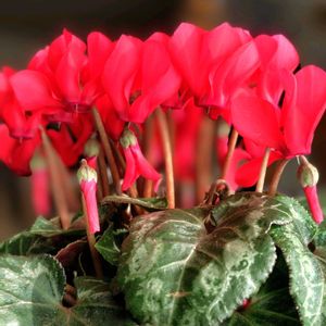 シンプルなシクラメン 花盛りになりました 最近はオシャレな品種がたくさんありますが これはカガリビバナの名にふさわしいお花ですね