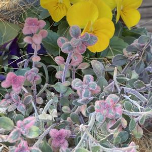 おはようございます☀️ 凍てつく寒さです🥶🧊 お花も葉っぱ☘️も凍ってる ①ビバーナムティヌスの蕾がふくらんできた ②利休梅の種がお星さま🌟 ③裏庭のサザンカのレストラン🍽️今年はまだお客様少なめ👀 ④一般ジーのビオラちゃん 一目惚れ🥰 豪雪地帯の方々にお見舞い申し上げます🙏 風邪🤧が本格的になってきたので、今日は最低限の事だけして体を休まようと思います。お散歩ちゃんはお休み。 今日も安全に気をつけて過ごして下さいね☺️💚❄️🚙