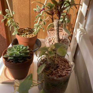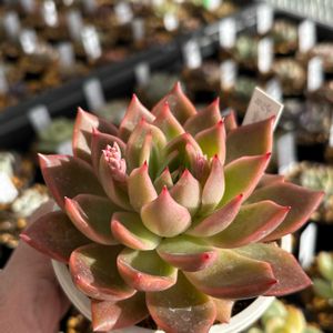 おはようございます😊 今週は暖かくてイイ感じです🎶 pic 相府蓮xトバレンシス 我が家の実生さん😍 立派になりました🎶 相府蓮の赤い感じと、トバレンシスのピカピカ光ってる感じも出てます😊 花芽もニョキ〜っと✨ 交配、行けるかな? 楽しみ😁