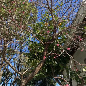 おはようございます☀ 通勤途中のサクラ🌸が早くも 咲きだしました。 毎年、いち早く咲きだします💕 名前はわかりません。 柵があってこれ以上近づけないのが とっても残念😢 大きな木です。 ミモザ💛💚の小ちゃな蕾も可愛い🩷 昨日のpic