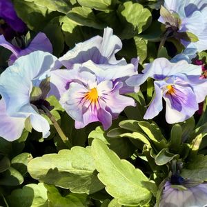 おはようございます♪(๑ᴖ◡ᴖ๑)♪ 今日の2枚目はパンジー・ビオラさん達ですo(^▽^)o🩵💚 🏷️ 水曜日は水色 🏷️ (祝)青い花マニア8周年 ◎ フリル咲きパンジーシエルブリエ 玄関前や庭に咲くパンジー・ビオラさん、冬の寒い空気で花びらが縮んでしまいましたが、暖かい太陽の日差しを浴びてやっと綺麗に咲きました(((o(*゚▽゚*)o)))♡♡🩵🩵💐