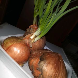 💚スライドしてね💚。 冷蔵庫で立春を むかえた タ マ ネ ギ。 (笑ってネ〰️😄)