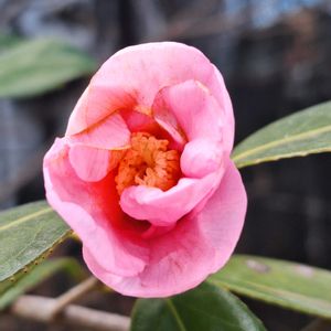 ピンク色のツバキが、咲き始めました。他の白椿やワビスケよりは、遅いです。