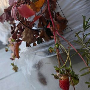 この寒い中、未だに実を付けてる イチゴ🍓さん。 お手入れできなくてごめんなさい。 それなのにありがとう💕✨