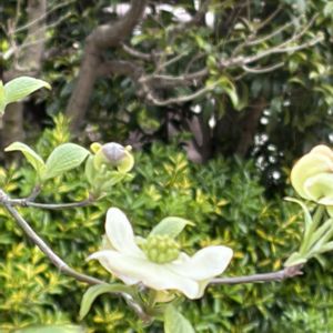 ハナミズキ 咲き出しましたね。 街路樹