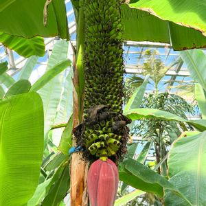 「センナリバナナ」. 原産地 ジャワ〜マレー半島 花序の長さ1〜2mとなり小さな実がびっしりつけている。1000個以上付くことから名が付く 時には3000個以上付くこともある 飼料用だとか? ※食には適さない様です ※初めての出会いでしたー 京都府立植物園温室2025/12/7